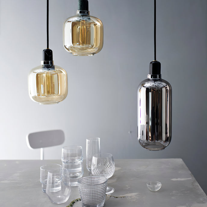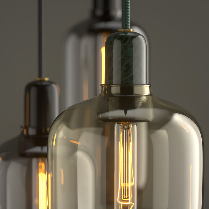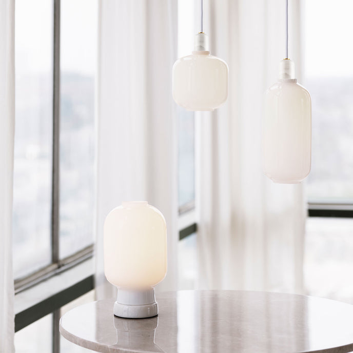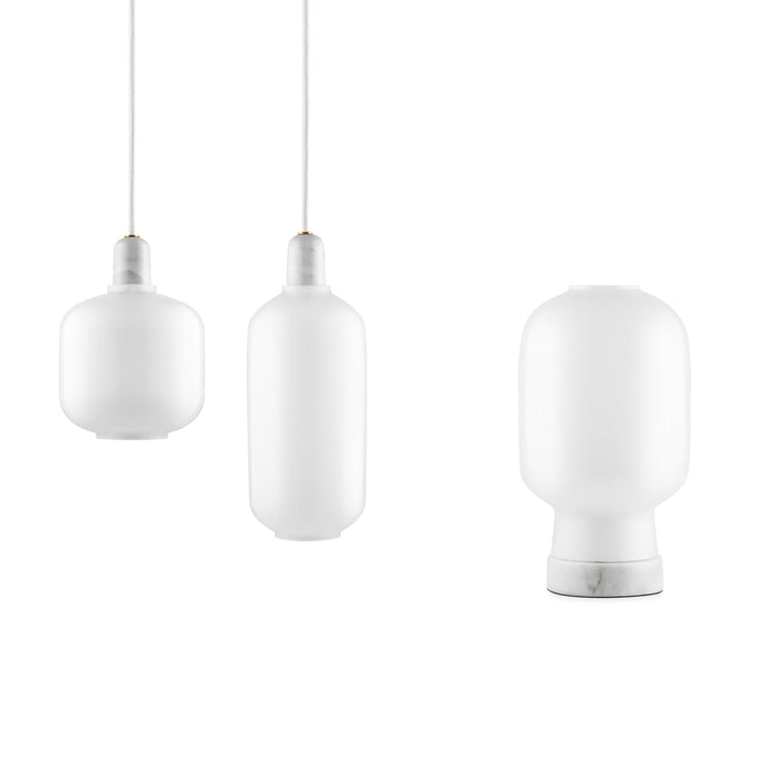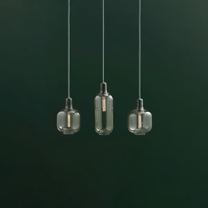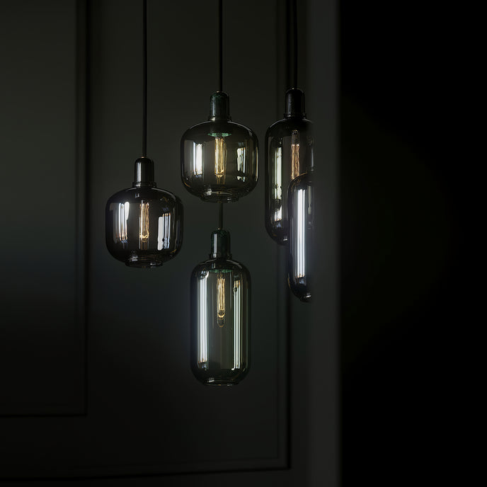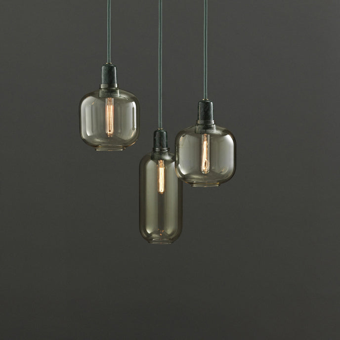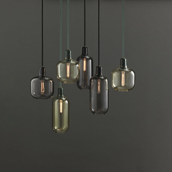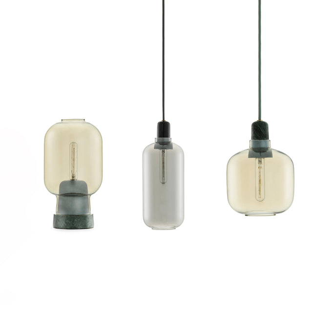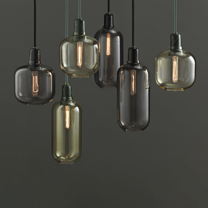 Amp عبارة عن مجموعة من المصابيح الصغيرة المستوحاة من مكبرات الصوت الأنبوبية القديمة من الستينيات. تضيف الأشكال الفريدة والمواد الكلاسيكية من الرخام والزجاج إحساسًا بالحنين وفي نفس الوقت إحساسًا معاصرًا إلى Amp. تنتج مجموعة المصابيح إضاءة جميلة ومريحة، ويمكن أن يشكل التصميم المتطور جزءًا من العديد من الديكورات الداخلية المختلفة. قم بتعليق مصباح أمبير واحد في الردهة، أو في زاوية غرفة المعيشة، أو قم بإنشاء مجموعة من مصابيح أمبير على طاولة غرفة الطعام الخاصة بك للحصول على تأثير قاعة الرقص الحديثة.