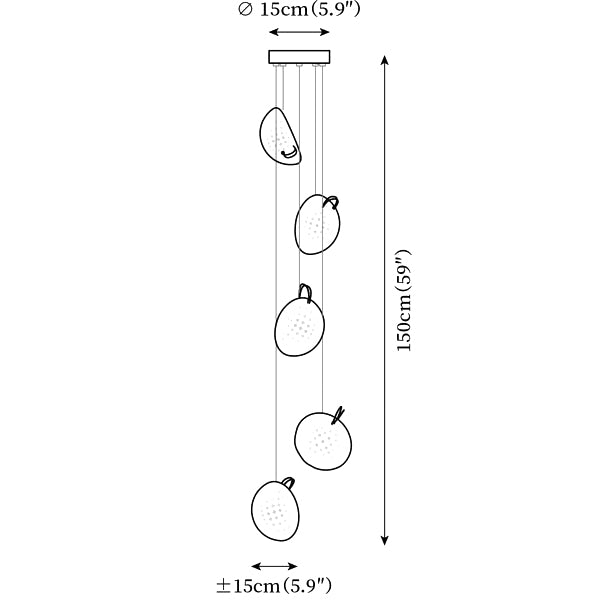 - حجم 5 رؤوس: القطر 15 سم × الارتفاع 150 سم / ∅ 5.9 بوصة × الارتفاع 59 بوصة