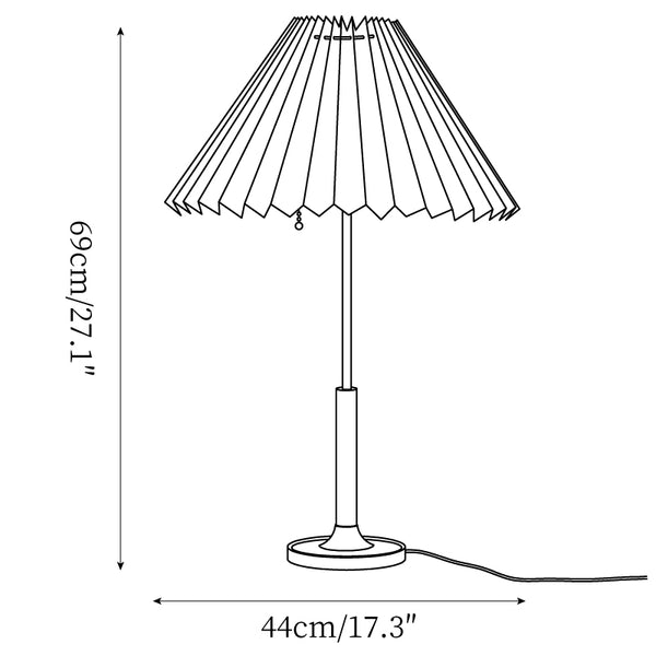 صورة ظلية لمصباح طاولة ومصباح أرضي. يتم تغليف الهيكل الأساسي النحاسي بمعدن مطلي غالبًا باللون الأبيض أو الأسود أو الأخضر مع مجموعة من أغطية المصابيح المختلفة المتاحة. إن بساطة هذا التصميم ترمز إلى مُثُل "خفيفة الوزن وأنيقة". كان يعتقد أن "المنزل يجب أن يكون شخصيًا ومريحًا" وقلّد ذلك في تصميماته الدافئة والمألوفة.