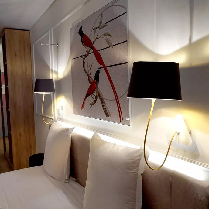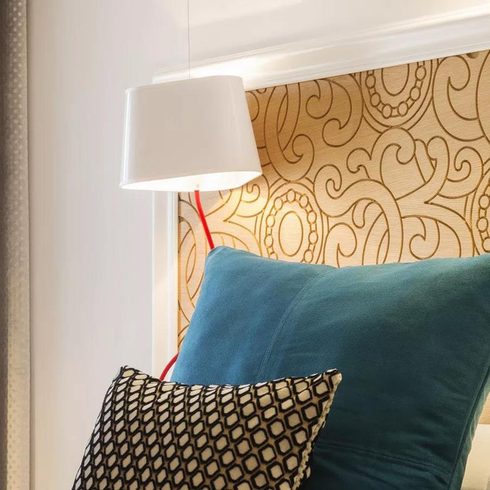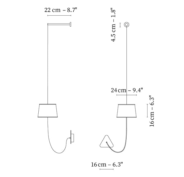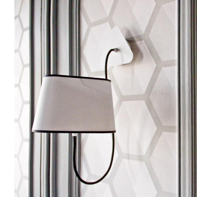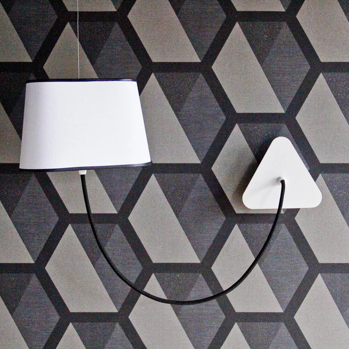 يتكون مصباح الحائط الصغير من غطاء مصباح، وكابل طاقة منسوج، ومثبت سقف، وكابل تعليق فولاذي قابل للتعديل. البساطة ونقاء الخطوط هي الكلمات الرئيسية لمصباح الحائط العملي والمعياري هذا. ينتج عاكس الضوء المثلث ضوءًا مميزًا للغاية، مما يقلل المساحة بطريقة معمارية. ميزته: المرونة في اختيار موقعه بفضل نمطية ارتفاعه.