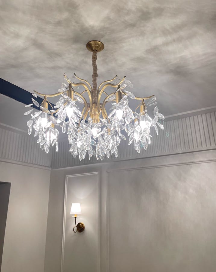 ارفع مستوى أي مساحة باستخدام ثريا Dorale المتطورة من Mooijane. صُنعت يدويًا من النحاس والكريستال، وتصميمها المتناغم والفريد من نوعه ينضح بالفخامة. دع الضوء الدافئ والممتع يخلق أجواءً أنيقة في غرفة المعيشة الخاصة بك. يجب اقتناؤه لمن يبحثون عن لمسة من التفرد.