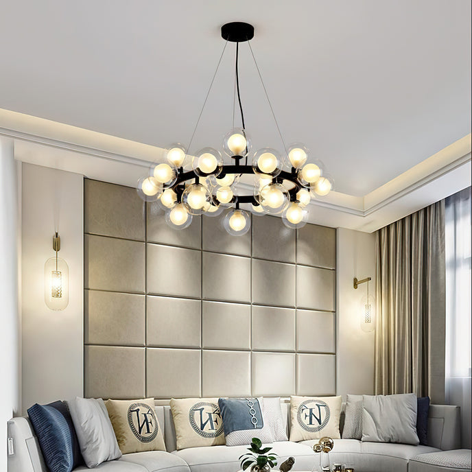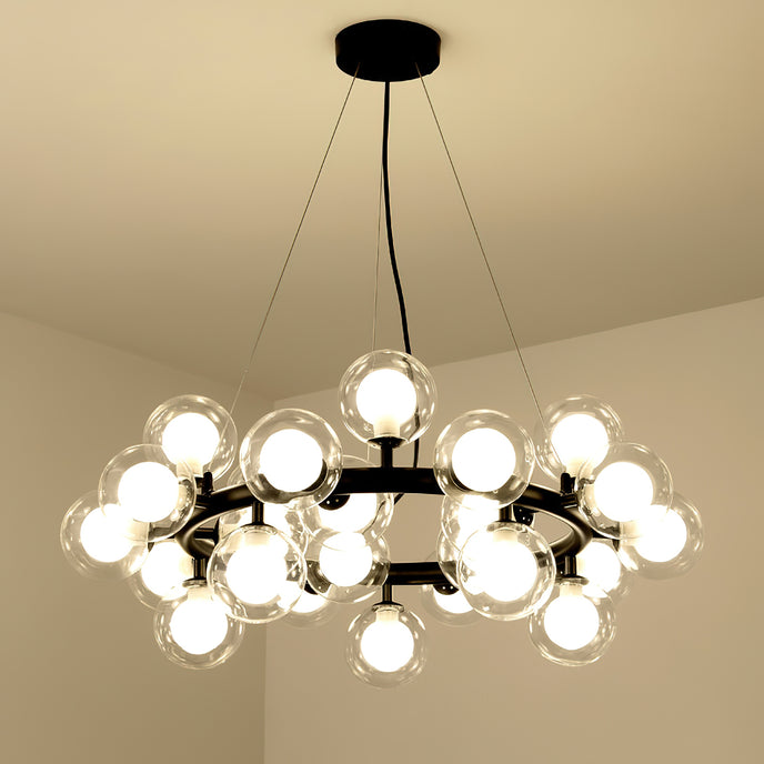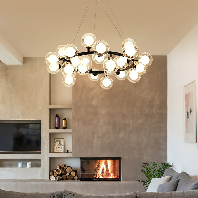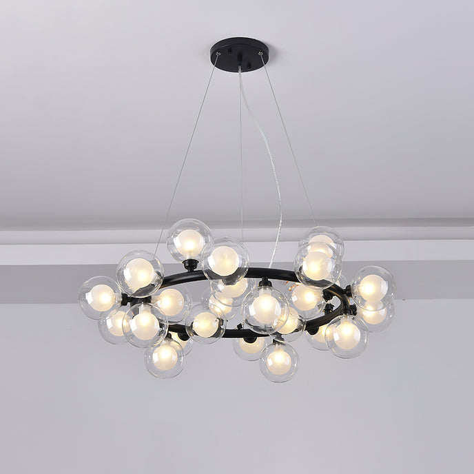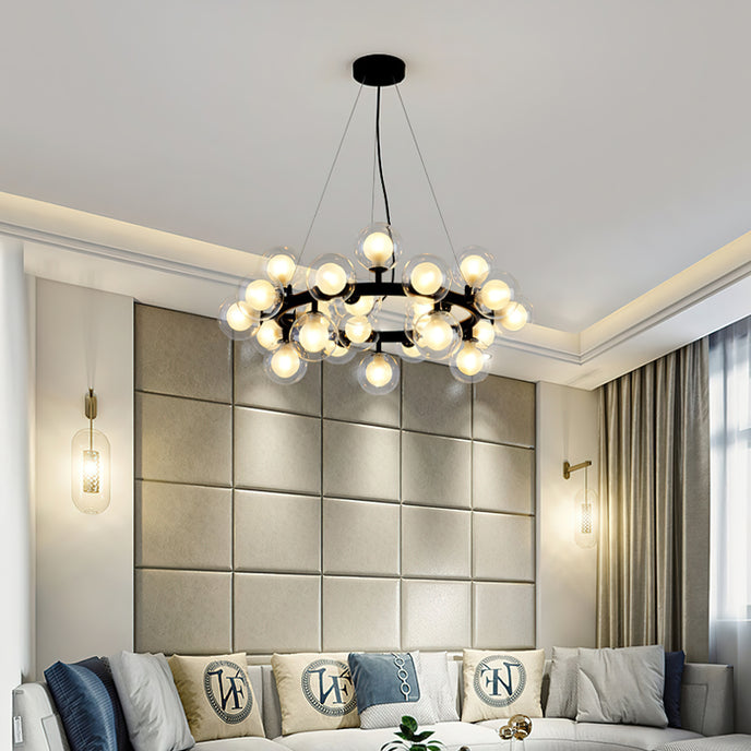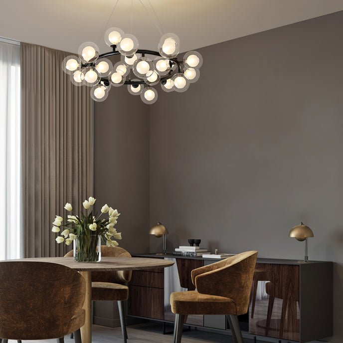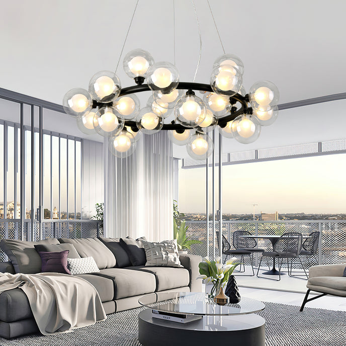 تخلق كرة الثريا الفقاعية هذه عرضًا مرئيًا مذهلاً بفضل بنيتها الفاخرة من الحديد والزجاج وشخصيتها الإبداعية. تضمن لوحة السقف عالية الجودة متانة طويلة الأمد، بينما يوفر عاكس الضوء الزجاجي مزدوج الطبقة ضوءًا ناعمًا مع نفاذية ممتازة. استمتع بتجربة الأناقة والذوق الرفيع في تصميم قطعة الإضاءة الفريدة والحصرية هذه.