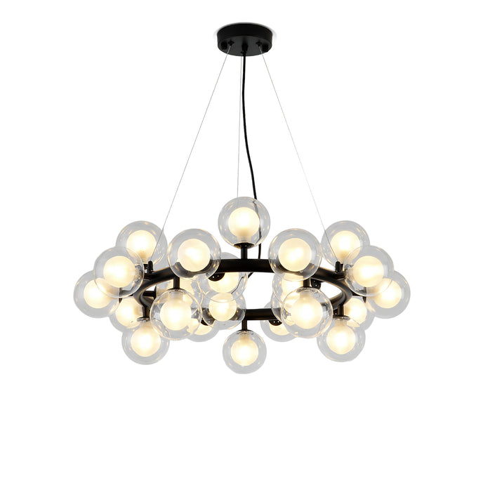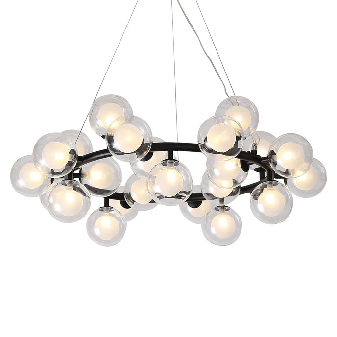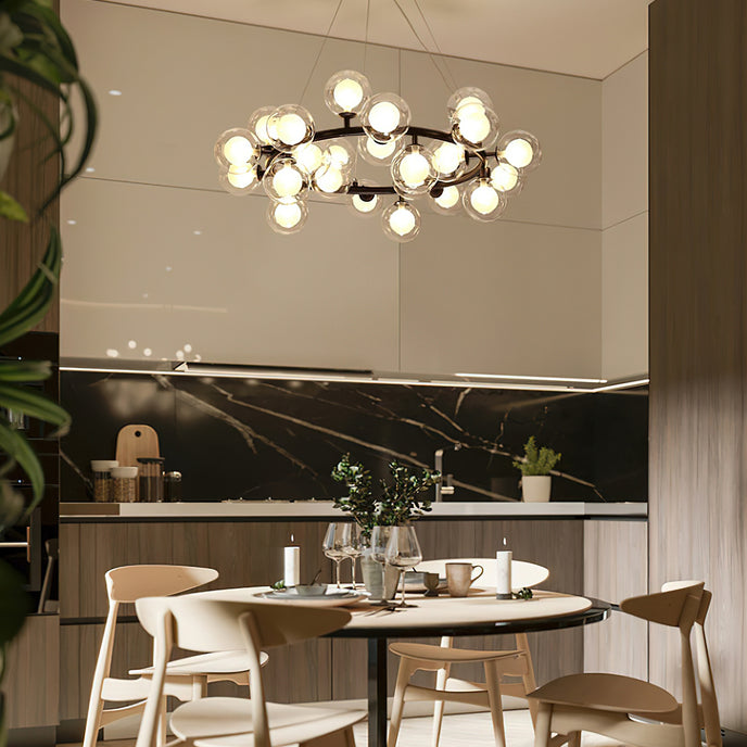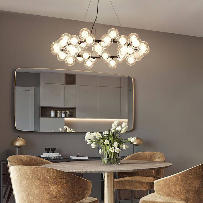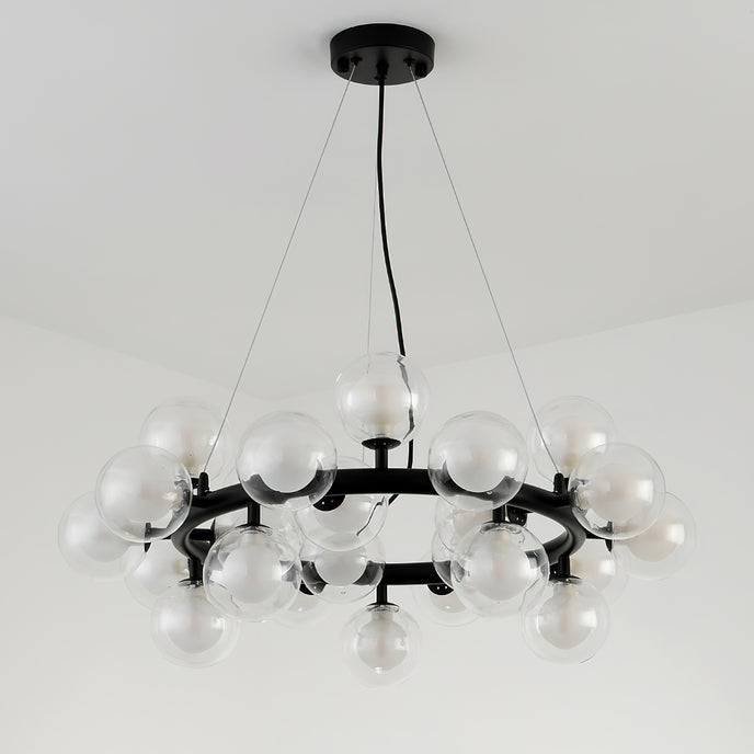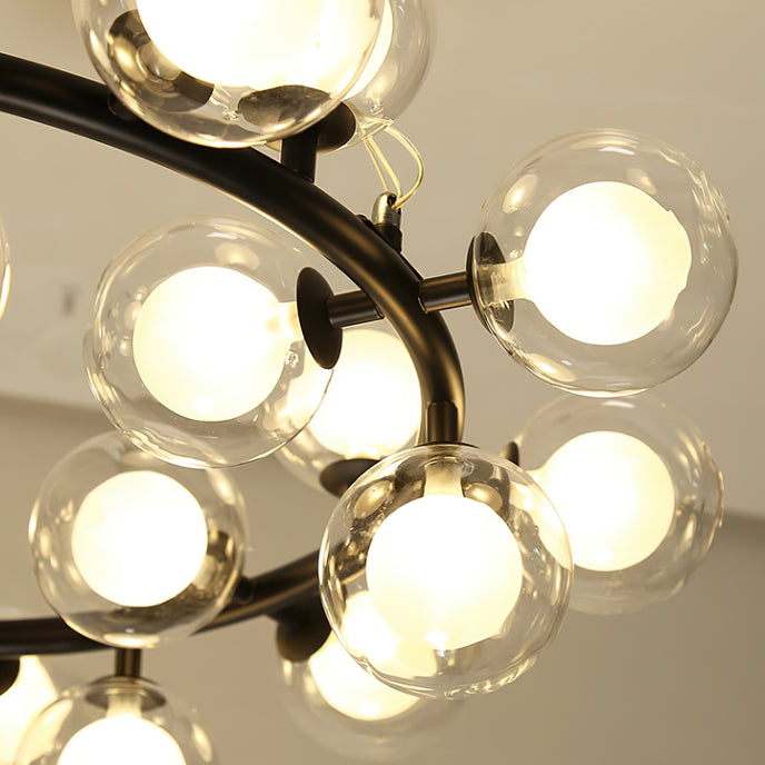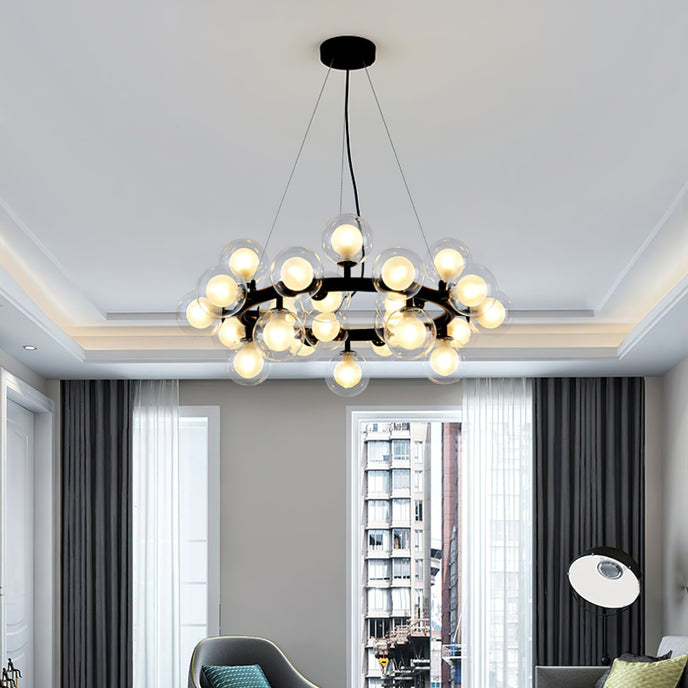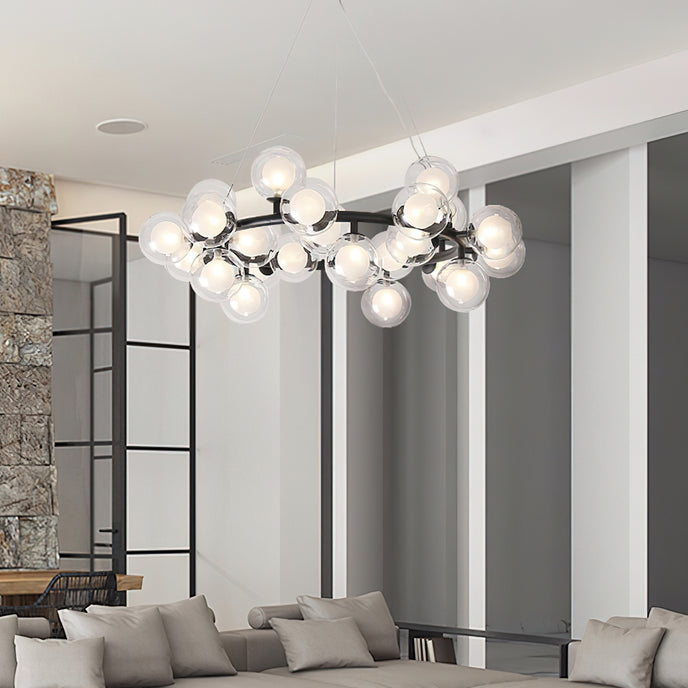 تخلق كرة الثريا الفقاعية هذه عرضًا مرئيًا مذهلاً بفضل بنيتها الفاخرة من الحديد والزجاج وشخصيتها الإبداعية. تضمن لوحة السقف عالية الجودة متانة طويلة الأمد، بينما يوفر عاكس الضوء الزجاجي مزدوج الطبقة ضوءًا ناعمًا مع نفاذية ممتازة. استمتع بتجربة الأناقة والذوق الرفيع في تصميم قطعة الإضاءة الفريدة والحصرية هذه.