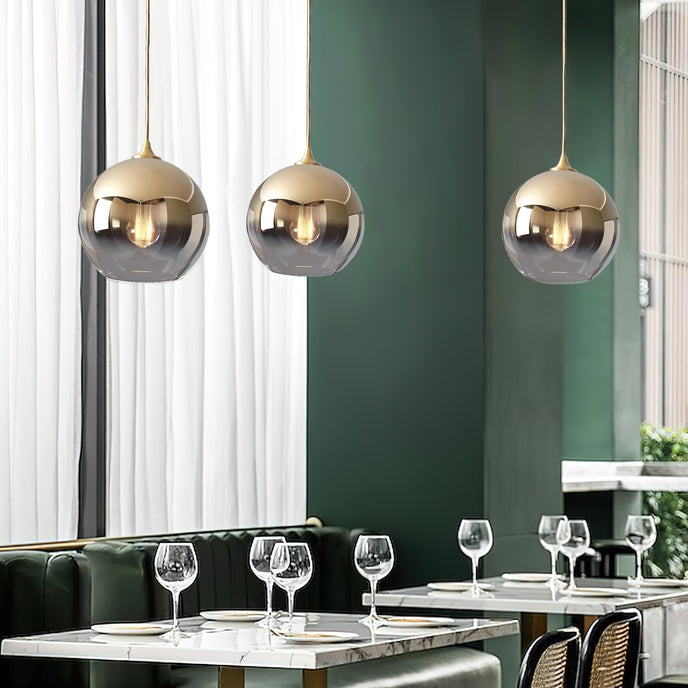 يضيف هذا المصباح الزجاجي الكروي نمطًا ريفيًا عصريًا إلى أي غرفة. مصنوع من غطاء زجاجي شفاف ولمسة نهائية ذهبية متدرجة، وهو مثالي لغرف الطعام وجزر المطبخ وغرف النوم وغرف المعيشة. متين وموفر للطاقة، ومن المؤكد أنه سيترك انطباعًا مميزًا في منزلك.