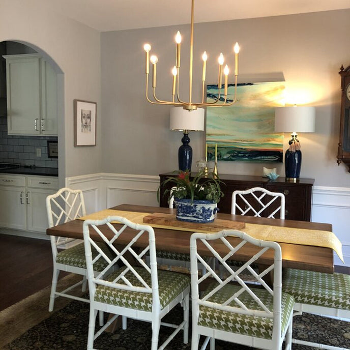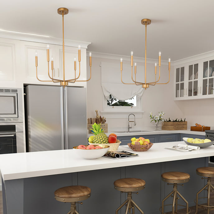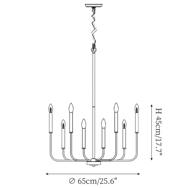 اكتشف الجاذبية الراقية في اللمسات النهائية المصقولة بالنحاس العتيق مع المهارات اليدوية الدقيقة. مع الأذرع المتماثلة، ستكمل البصمة الخطية لهذه القطعة طاولات غرفة الطعام البيضاوية أو المستطيلة وهي مثالية لجزر المطبخ وغرف النوم وغرف المعيشة والبهو والمداخل.