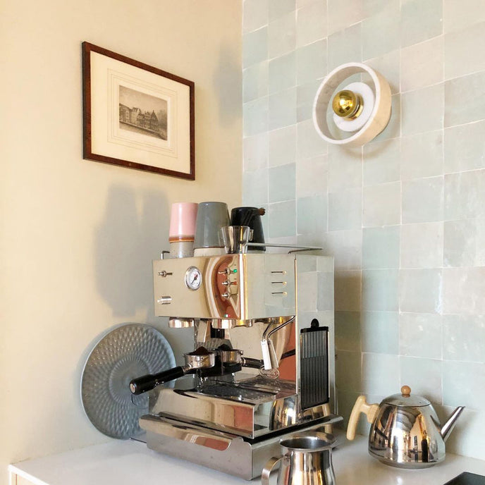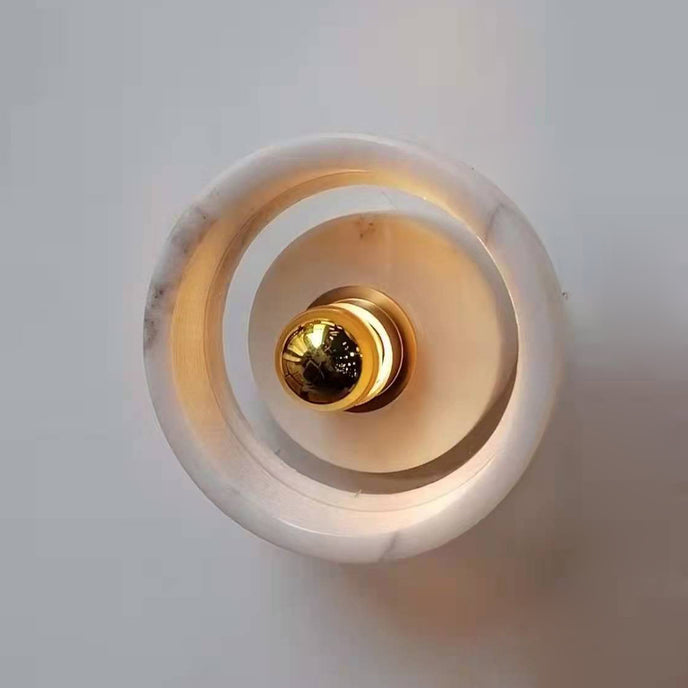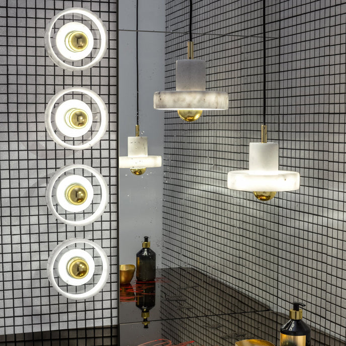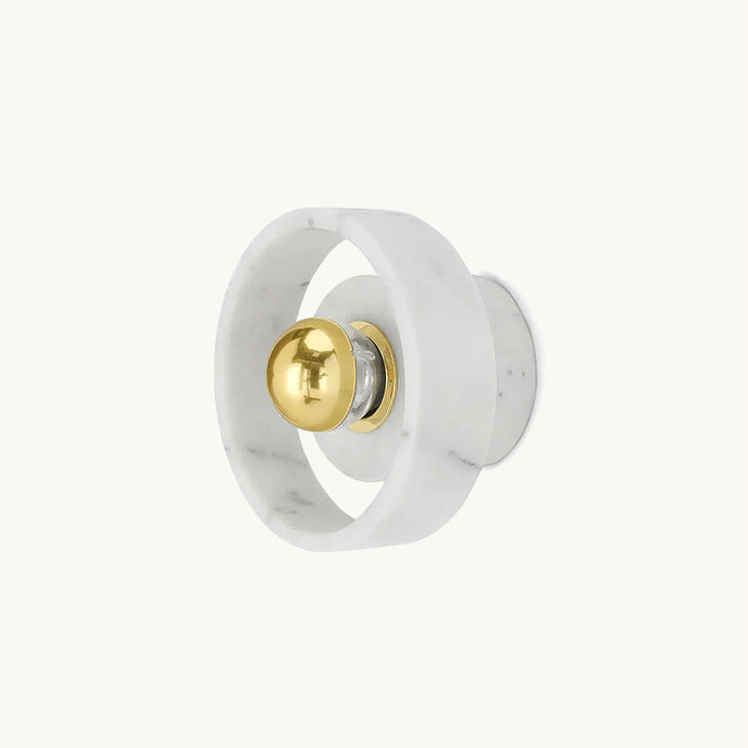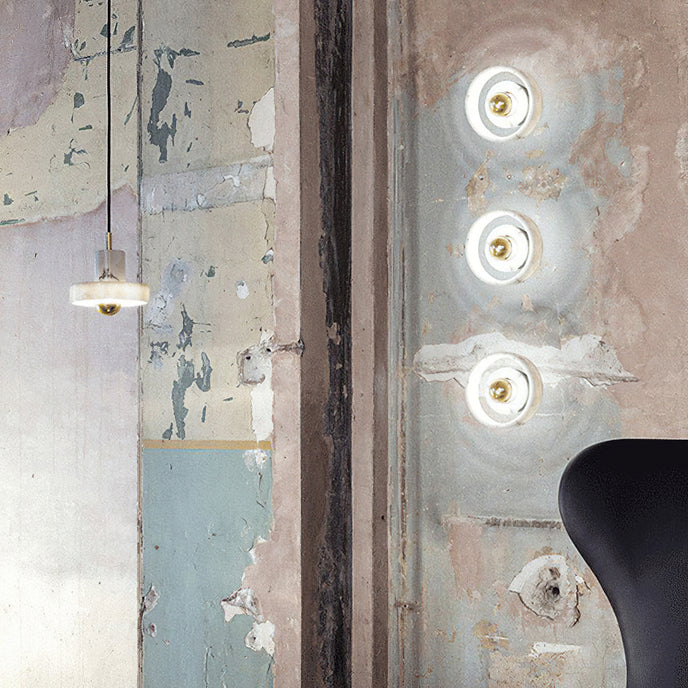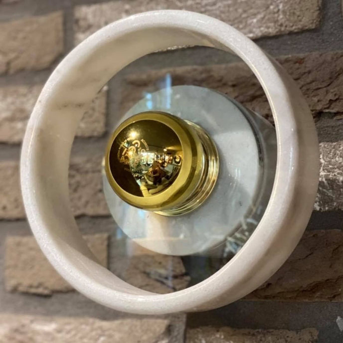 تم نحت مصباح الحائط الحجري من الرخام الأبيض، مما يمنحه سطحًا صلبًا وشبه ثمينًا. وهذا يمنحها لمسات من الهندسة المعمارية والنحت والتصميم المستوحاة من آلاف السنين من هذه الممارسات. يتميز بلمسة نهائية مصقولة، مصباح الحائط الحجري يجعل أي غرفة تبدو أكثر مصقولة وأنيقة. مثالي لأصحاب المنازل المحبين للبذخ ولعشاق الفن والهندسة المعمارية. تتميز كل قطعة من الرخام بملمس وخطوط فريدة، مما يجعل كل قطعة فريدة تمامًا.