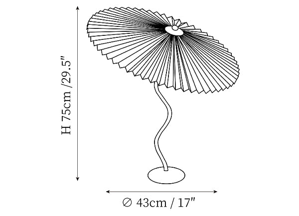 هذا المصباح مستوحى من قبعة مطوية/ غطاء مصباح قديم وجدته. تم تصميم قاعدة الحديد الصقلي المصنوعة يدويًا لتكمل الخفة الدقيقة لغطاء المصباح المطوي. يبلغ ارتفاع المصباح حوالي 75 سم مع قطر كابيلو 43 سم، وسيحتاج المصباح إلى بعض أعمال التجميع الأساسية قبل الاستخدام.