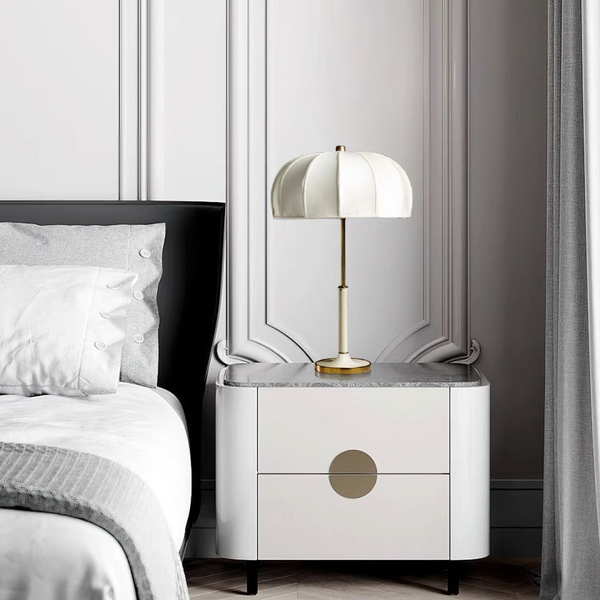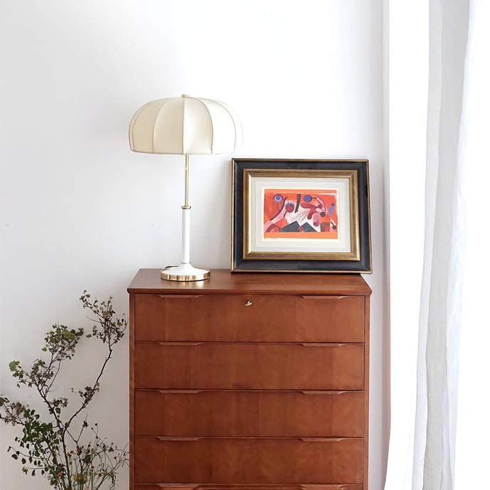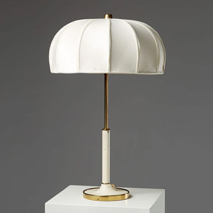 صورة ظلية لمصباح طاولة ومصباح أرضي. يتم تغليف الهيكل الأساسي النحاسي بمعدن مطلي غالبًا باللون الأبيض أو الأسود أو الأخضر مع مجموعة من أغطية المصابيح المختلفة المتاحة. إن بساطة هذا التصميم ترمز إلى مُثُل "خفيفة الوزن وأنيقة". كان يعتقد أن "المنزل يجب أن يكون شخصيًا ومريحًا" وقلّد ذلك في تصميماته الدافئة والمألوفة.