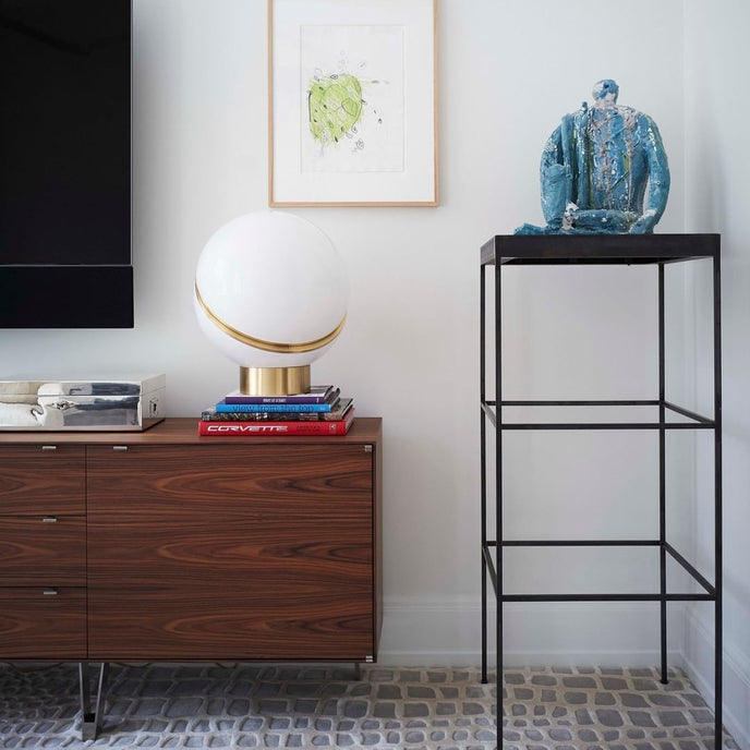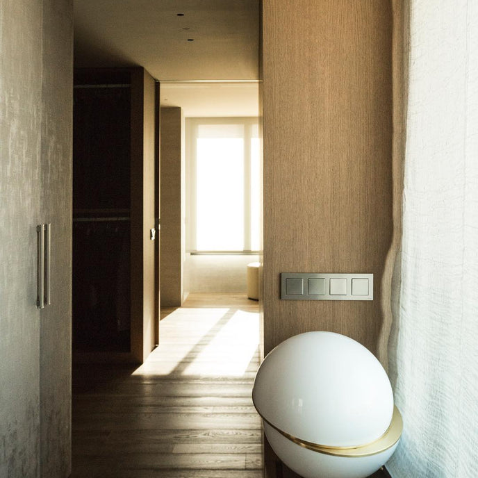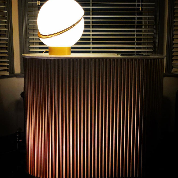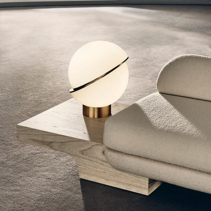 نسخة مصغرة من ضوء الهلال الشهير، تم تقطيع هذه الكرات المضيئة بشكل غير متماثل إلى نصفين لتكشف عن واجهة نحاسية مصقولة على شكل هلال. مصباح الطاولة الهلالي عبارة عن كرة أكريليك بيضاء غير شفافة ومضاءة ومقطعة إلى نصفين. يجمع Crescent بسلاسة بين المادة الصلبة والمعتمة، مما يجعله مثاليًا في أي مكان.