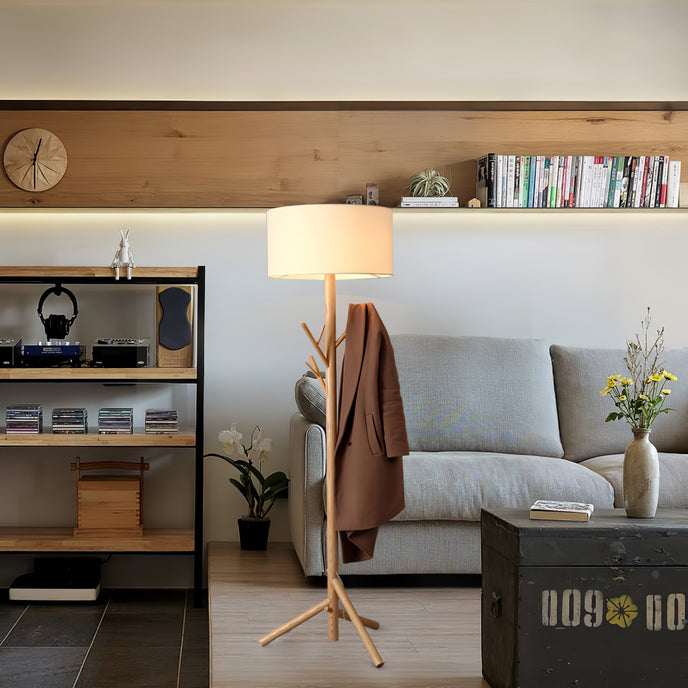 تصميم هذا المصباح الأرضي مستوحى من الإحساس بالحياة المريحة، المصباح الأرضي يتكون من الخشب الصلب واللوحة، وتصميم الشكل الشبيه بالشجرة يجعلنا نشعر كما لو كنا في الغابة لذلك أننا تحررنا من الحياة المزدحمة في المدينة. يمكن للمزيج الفريد من رف المعاطف والمصباح الأرضي وضع الملابس والقبعات. عاكس الضوء من قماش الكتان، يخلق جو إضاءة دافئ وأنيق، وإضاءة ناعمة. يوضع في أي زاوية زخرفة زاهية.