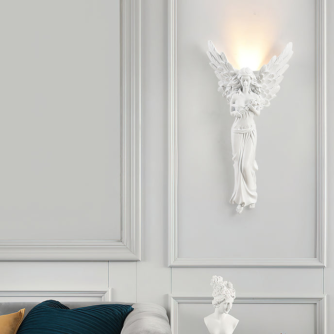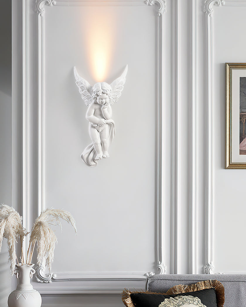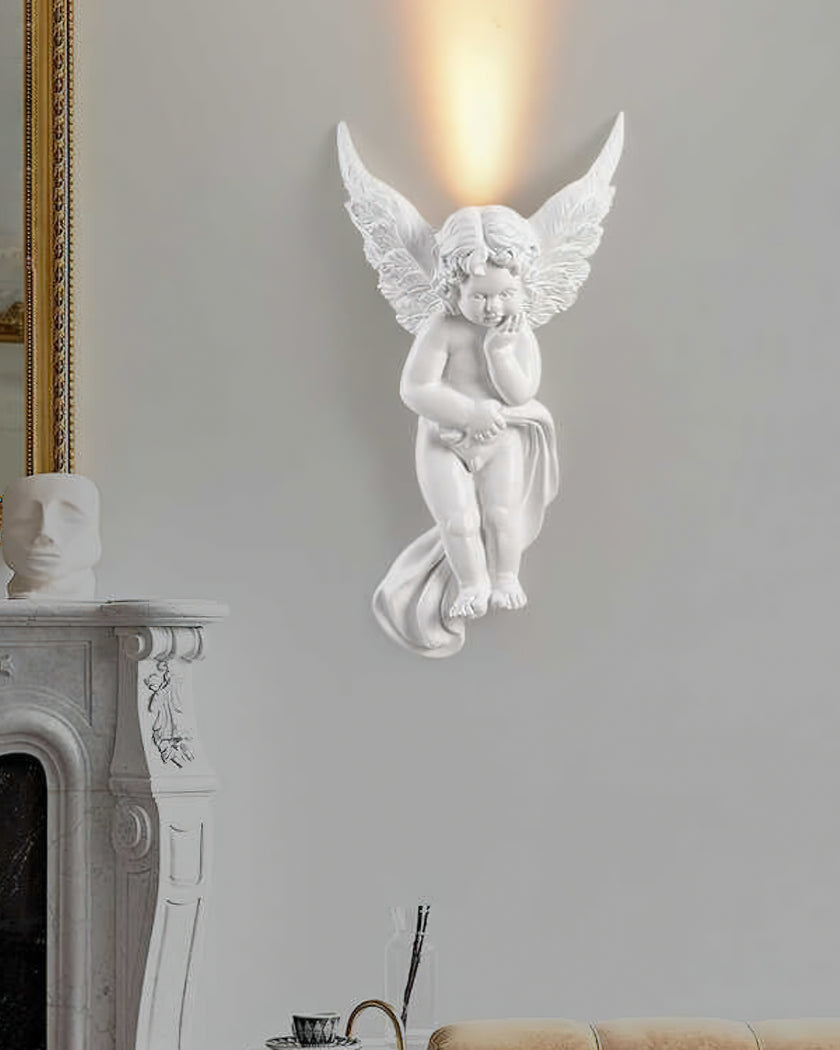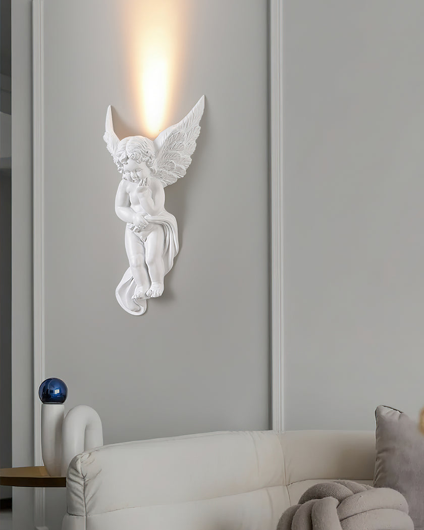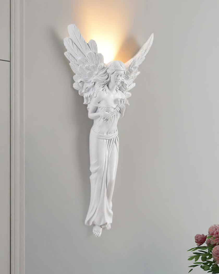 قم بإضاءة مساحتك باستخدام مصباح الحائط Angel الراتنج الفاخر. مصنوع من الراتنج الأبيض، ينبعث هذا المصباح توهجًا دافئًا ومريحًا للعين دون أي وهج. مثالي لمن تحب الذين يقدرون ديكور المنزل المدروس. يضيف هذا الضوء الفريد والجميل لمسة من الأناقة.