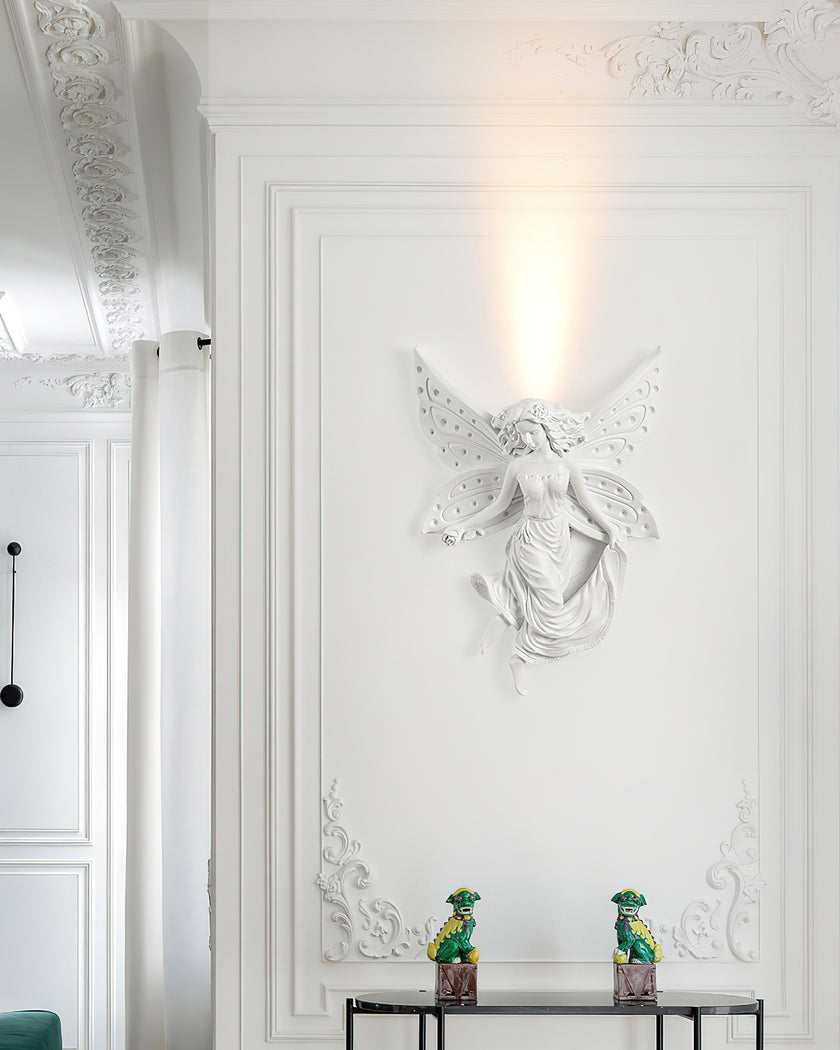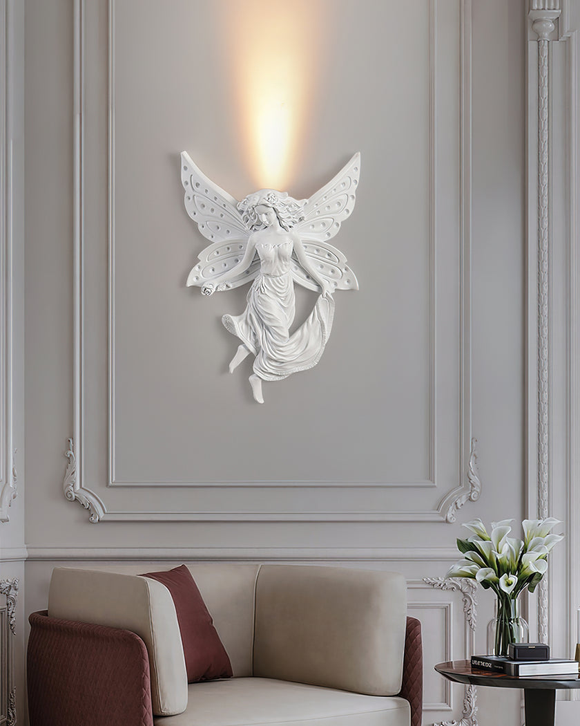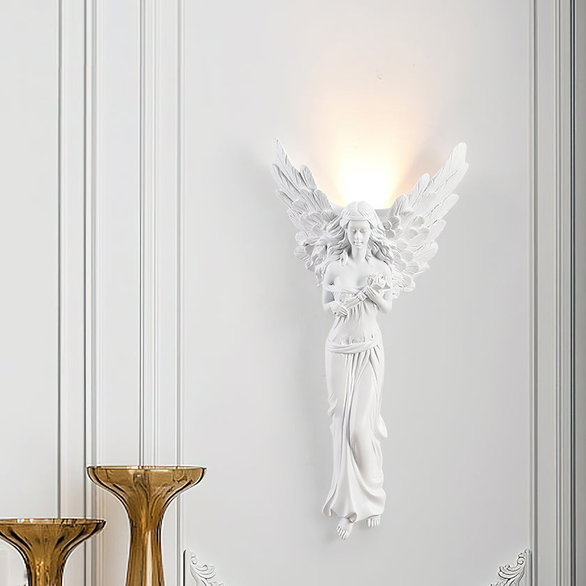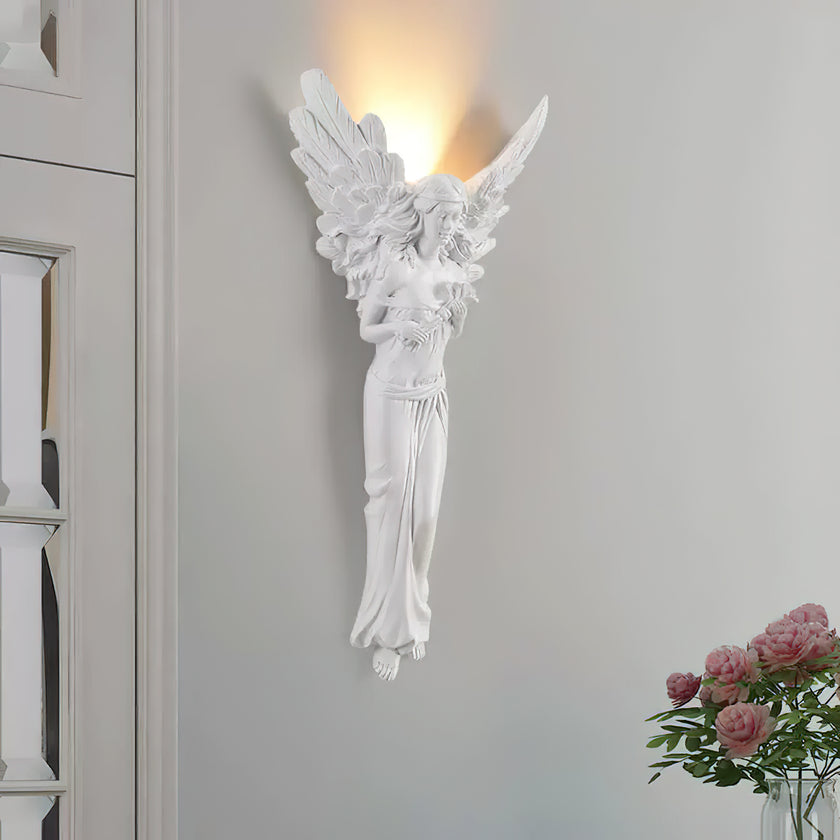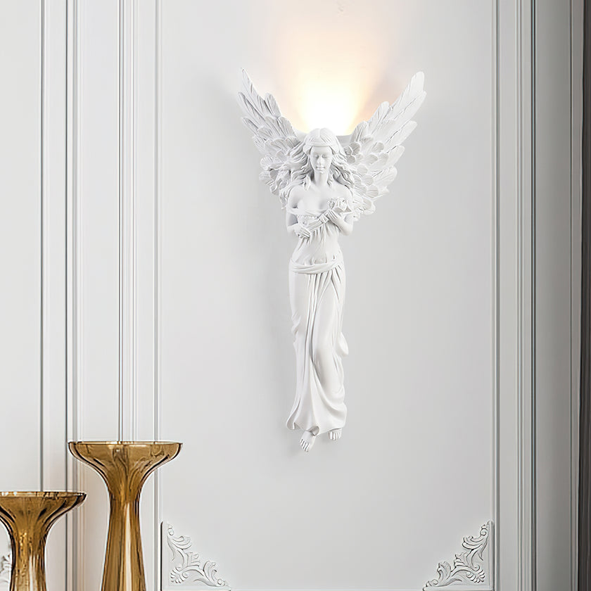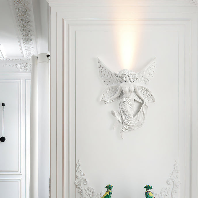 قم بإضاءة مساحتك باستخدام مصباح الحائط Angel الراتنج الفاخر. مصنوع من الراتنج الأبيض، ينبعث هذا المصباح توهجًا دافئًا ومريحًا للعين دون أي وهج. مثالي لمن تحب الذين يقدرون ديكور المنزل المدروس. يضيف هذا الضوء الفريد والجميل لمسة من الأناقة.