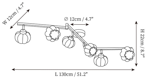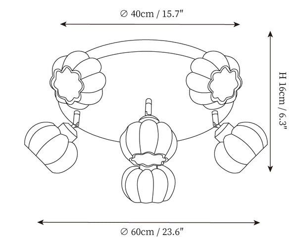 حجم الموديل B 5 رؤوس: القطر 50 سم × الارتفاع 16 سم / ∅ 19.7 بوصة × الارتفاع 6.3 بوصة