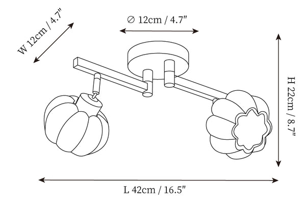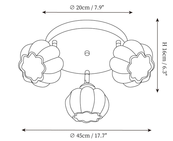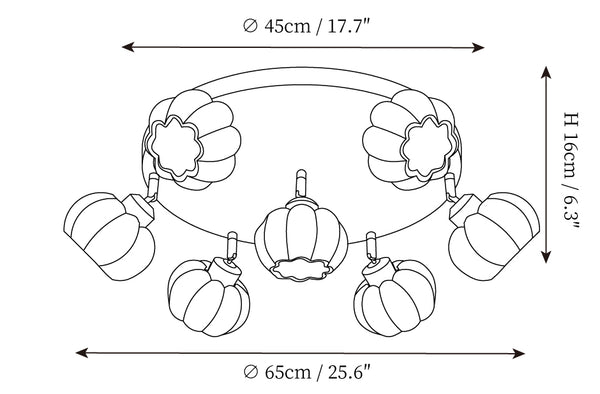 حجم الموديل B 7 رؤوس: القطر 65 سم × الارتفاع 16 سم / ∅ 25.6 بوصة × الارتفاع 6.3 بوصة