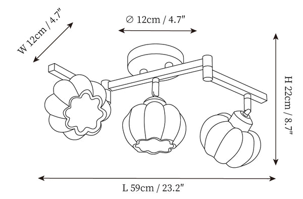 حجم الموديل C 3 رؤوس: الطول 59 سم × العرض 12 سم × الارتفاع 22 سم / الطول 23.2 بوصة × العرض 4.7 بوصة × الارتفاع 8.7 بوصة