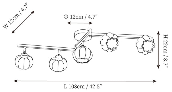 حجم الموديل C 5 رؤوس: الطول 108 سم × العرض 12 سم × الارتفاع 22 سم / الطول 42.5 بوصة × العرض 4.7 بوصة × الارتفاع 8.7 بوصة