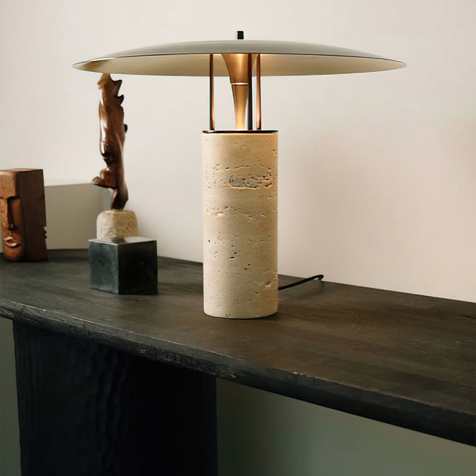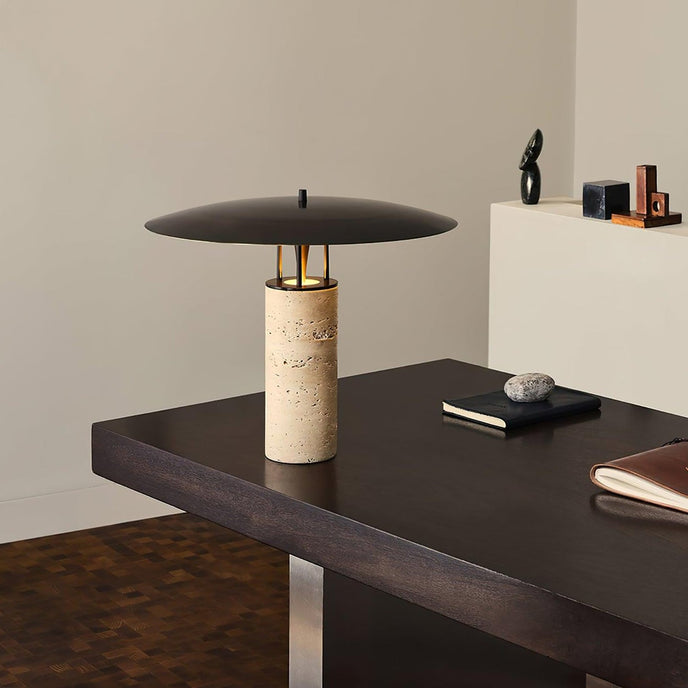 Elevate everyday lighting with the Arulow Table Lamp by Mooijane. A sleek silhouette pairs a sculptural travertine base with a soft fabric shade, casting a warm, ambient glow that feels refined yet inviting. Perfect for bedside tables, consoles, or reading nooks, Arulow adds effortless elegance to any room.