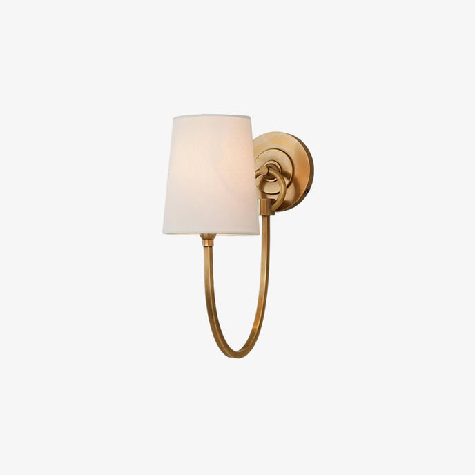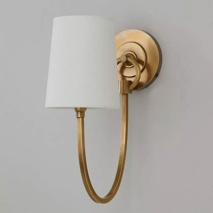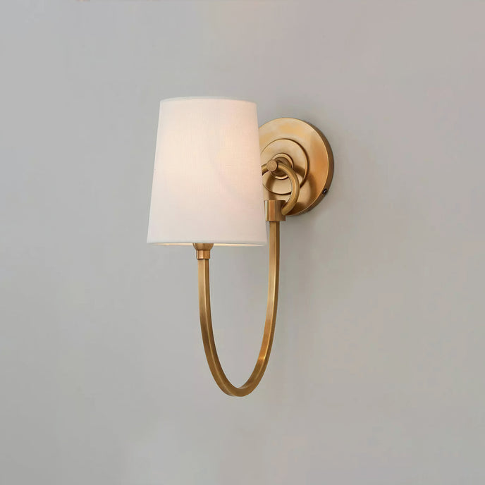 The Cameron Wall Light by Mooijane offers a refined nod to equestrian elegance, featuring a silhouette inspired by a horse bridle. Its sleek, modern lines are paired with a luminous linen shade, delivering soft, ambient light. A perfect accent for transitional interiors, this sconce brings a sophisticated and contemporary upgrade to hallways, bedrooms, or living spaces.