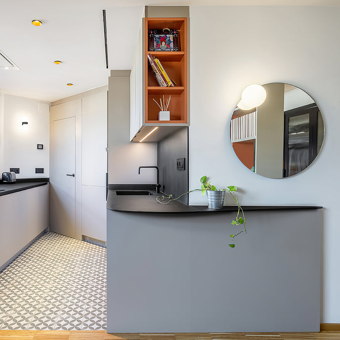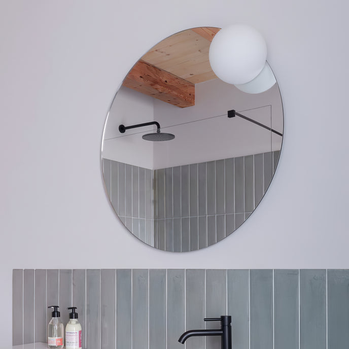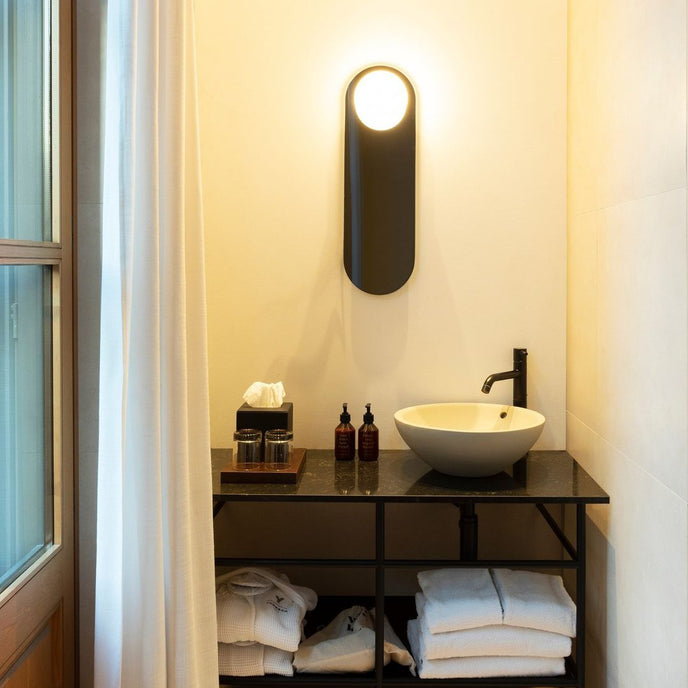 كما لو أن جرمين سماويين ينزلقان فوق بعضهما البعض، يغطي ضوء LED الأبيض الدافئ جزءًا من جسم المصباح المصنوع من الكروم - مشهد مذهل يمكنك من خلاله وضع لمسات رائعة في منزلك! يوجد مصباح LED في جسم نصف دائري بلمسة نهائية من الساتان ويمكن التحكم فيه وتعتيمه عبر مفتاح الإضاءة الرئيسي.