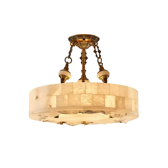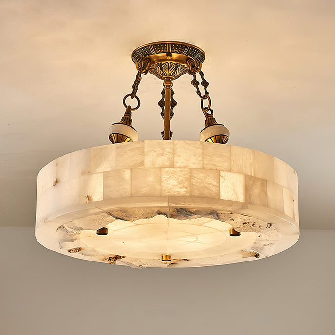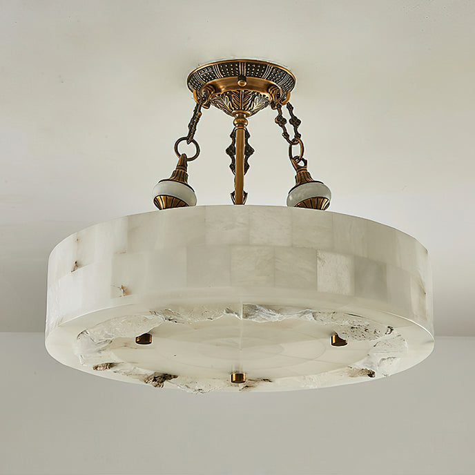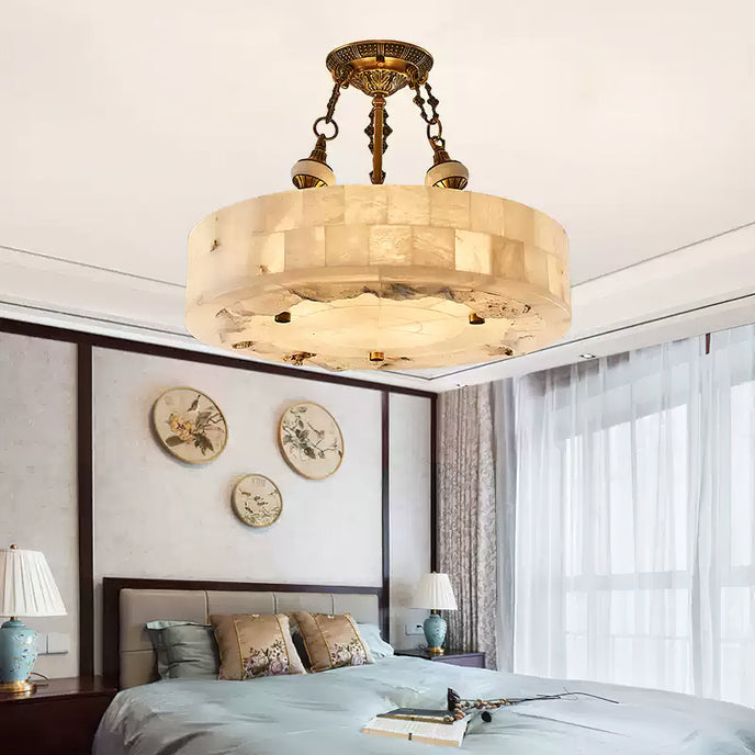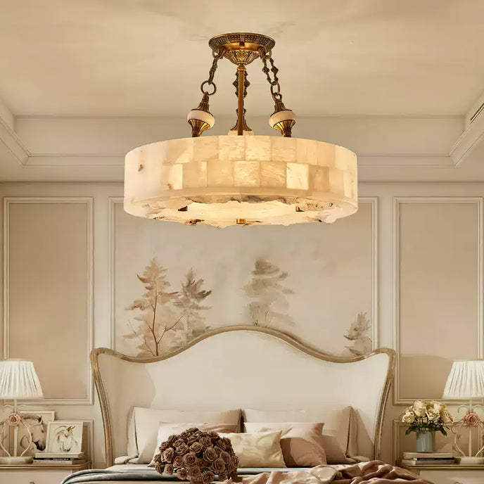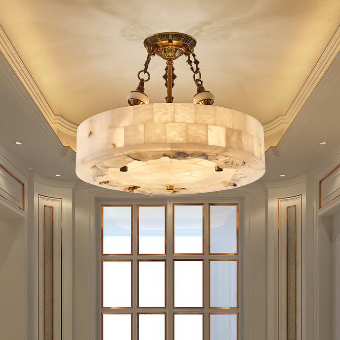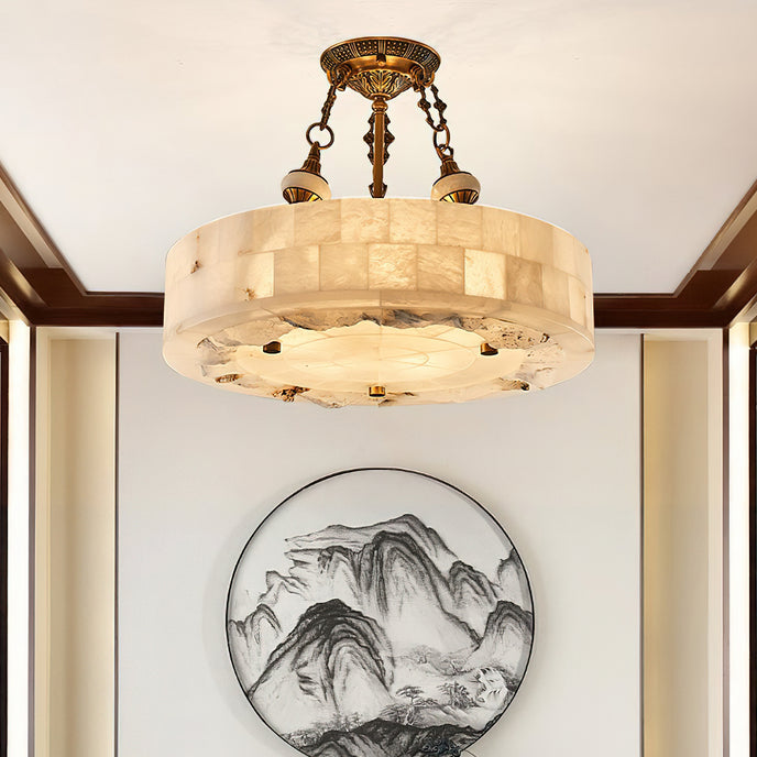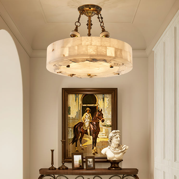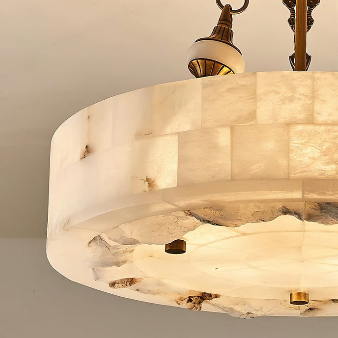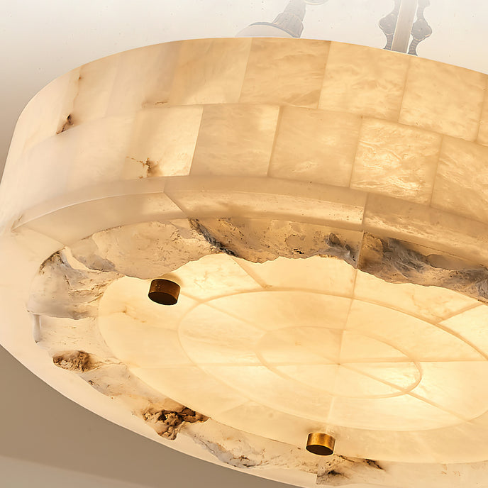 - Alabaster is a natural stone known for its smooth texture and translucent appearance. Its origins date back to ancient civilizations where it was used for sculpting and crafting objects of importance. There are two main types of alabaster: Gypsum and Calcite, with the latter being the preferred type for lighting fixtures due to its durability and natural veining.