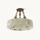 Introduce elegance and warmth to your living room with the Fluted Alabaster Ceiling Lamp from Mooijane. The hand-carved copper arms and brass fixture add durability and sophistication. The alabaster round shape offers a tastefully diffused warm light, creating an exclusive and inviting atmosphere. Elevate your home with quality and safety.