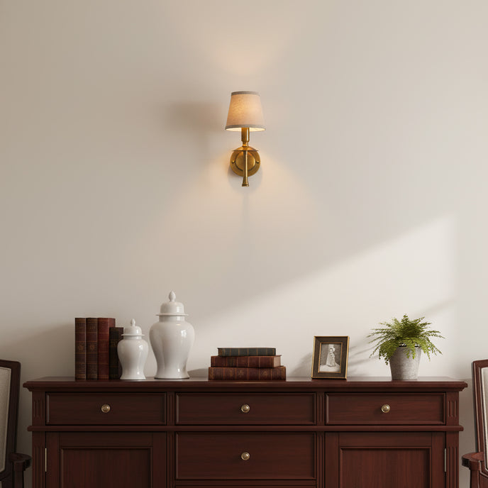 The Gavio Wall Light from Mooijane brings a refined touch of luxury to any interior. Featuring a sleek copper finish paired with a soft fabric shade, it harmonizes beautifully with both classic and modern décor. Emitting a warm, inviting glow, the Gavio creates an elegant ambiance—perfect for bedrooms, hallways, or living spaces.