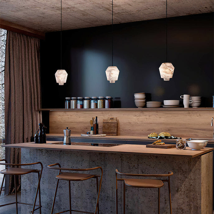 The Harlow Pendant Light by Mooijane is a refined statement crafted from natural alabaster. Each shade features unique veining and soft tonal variations, making every piece one of a kind. When illuminated, the stone gently diffuses light, creating a warm, calm glow that adds understated elegance to any space.