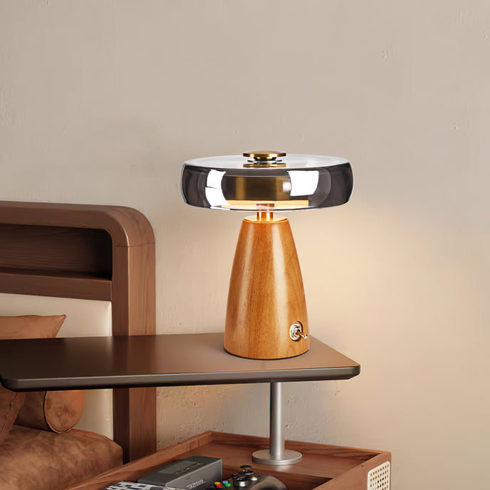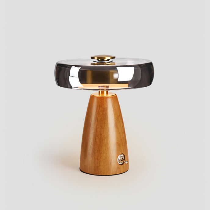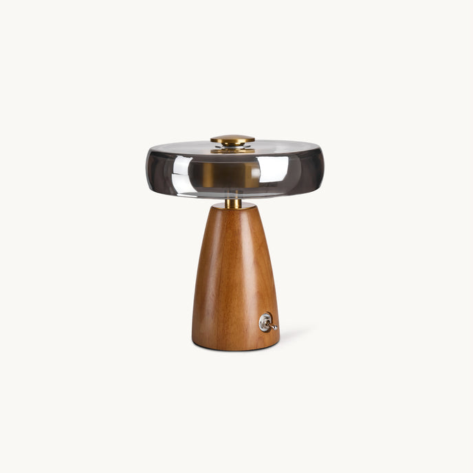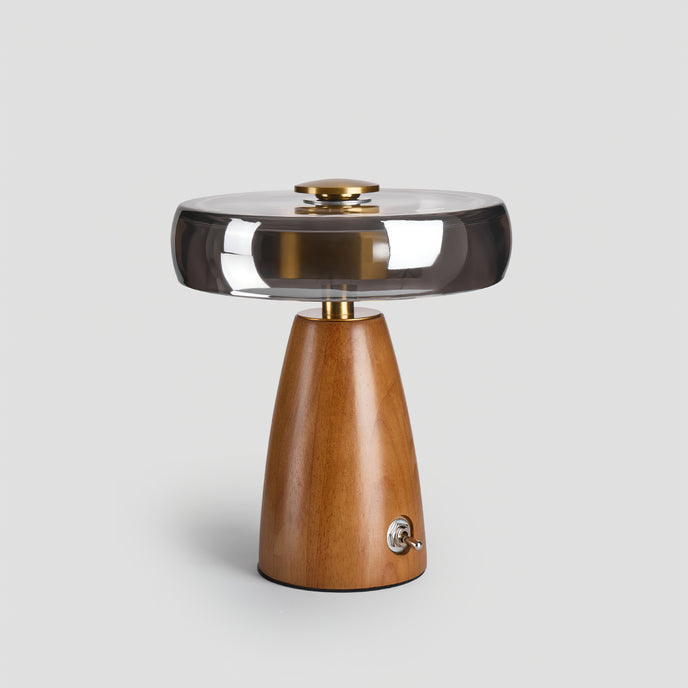 The Koepel Table Lamp from Mooijane blends natural warmth with modern elegance. Its tapered solid wood base showcases delicate grain, creating a rustic yet refined feel, while the smoky gray glass shade casts a soft, layered glow. Perfect for bedrooms, studies, or living areas, it provides both practical illumination and a sophisticated decorative accent.