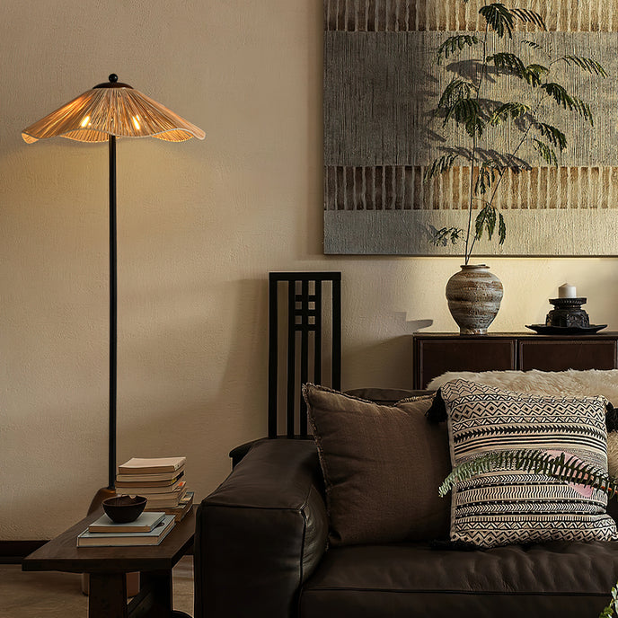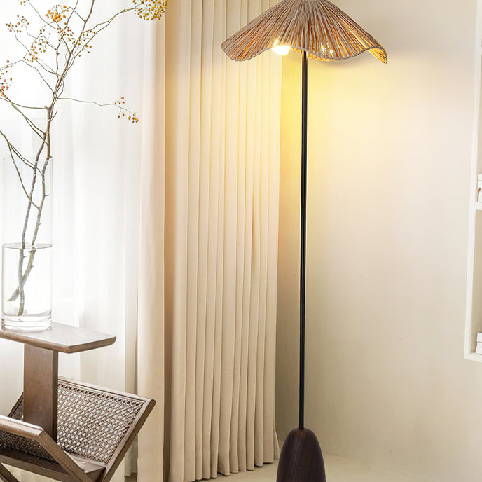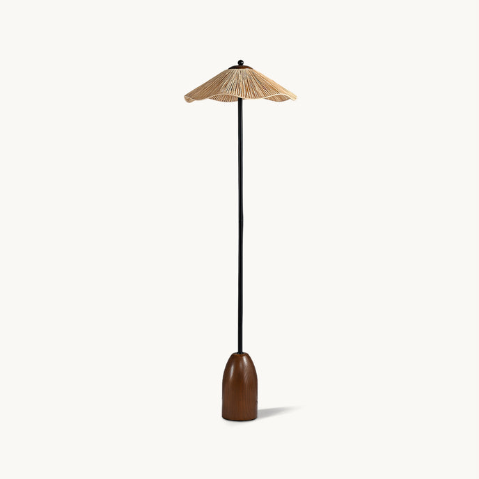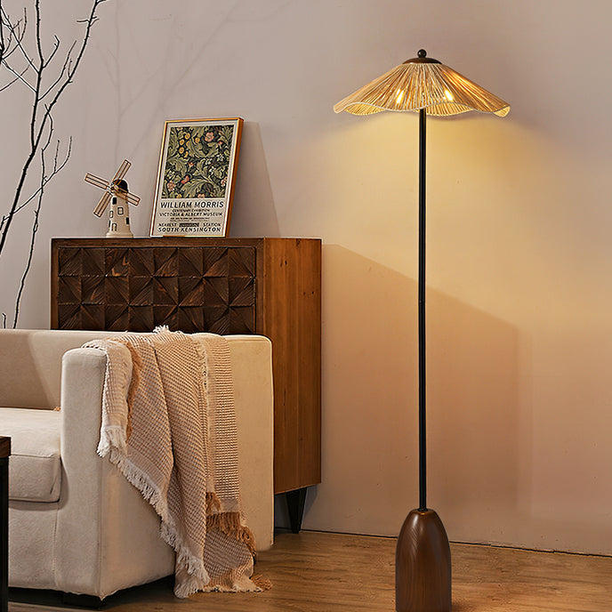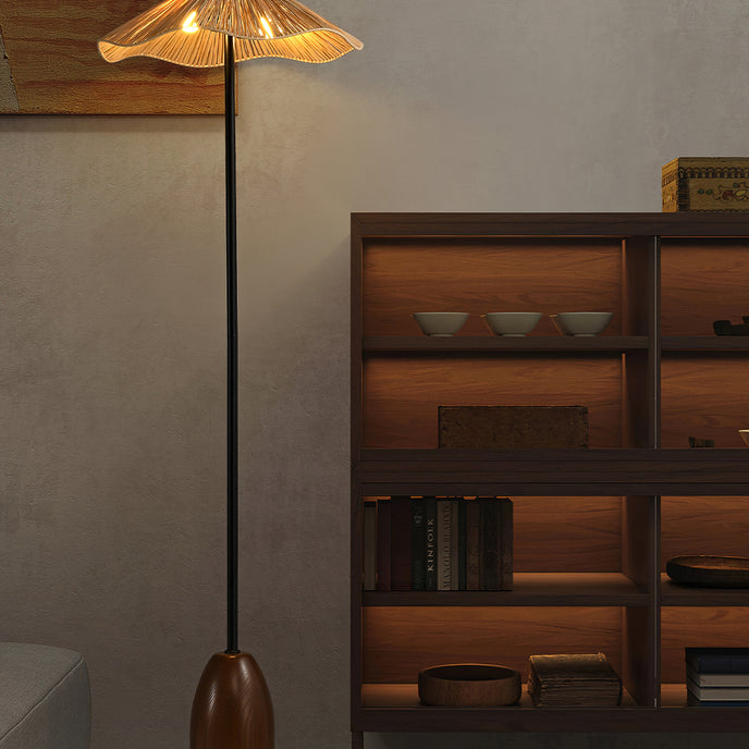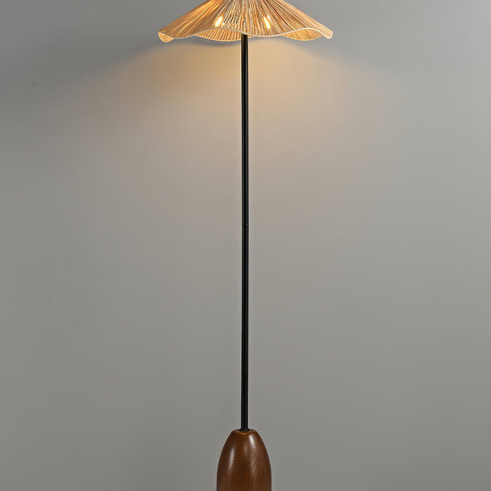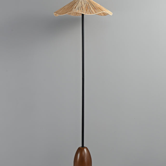 Experience the perfect combination of natural beauty and modern design with the Retro Straw Hat Floor Lamp. The raffia shade, resembling a delicate flower, creates a tranquil ambiance with its soft, warm light. The sleek black metal stand and wooden base add a touch of sophistication, making it a versatile addition to any interior.