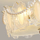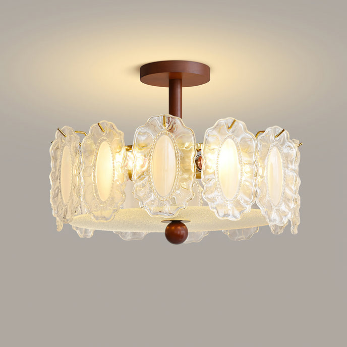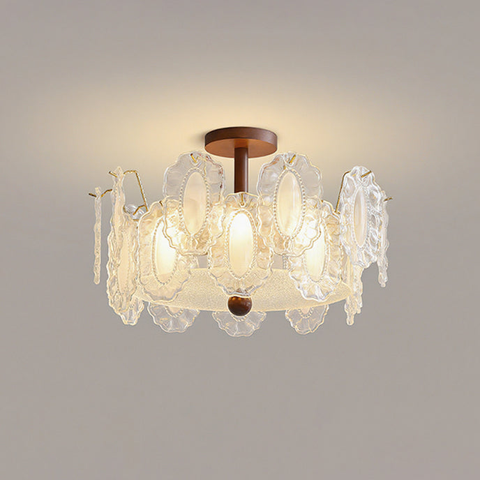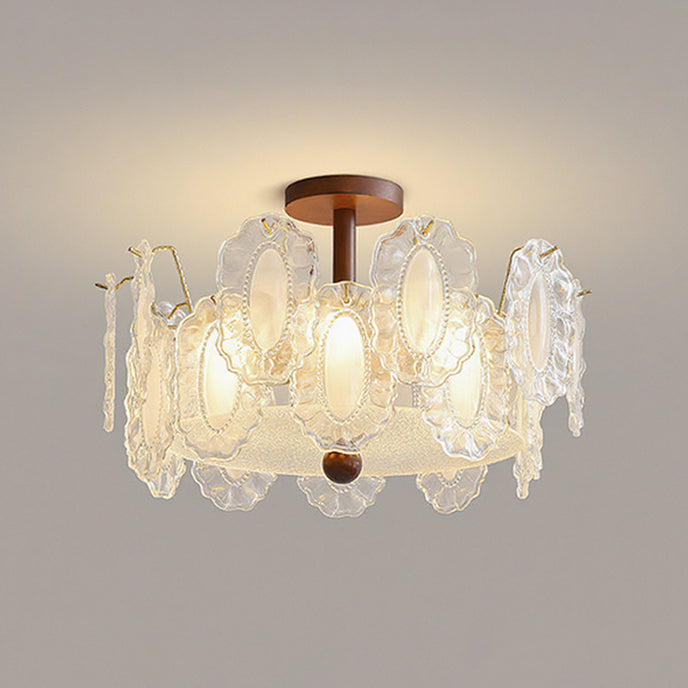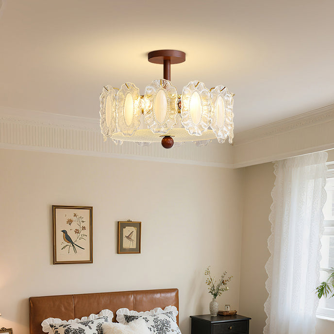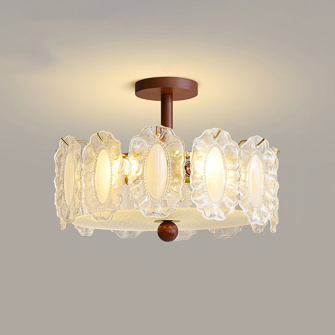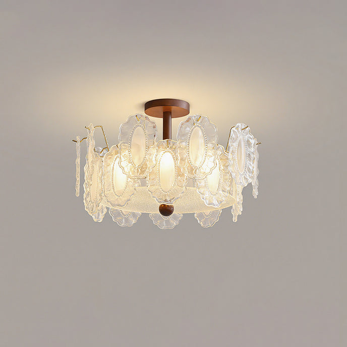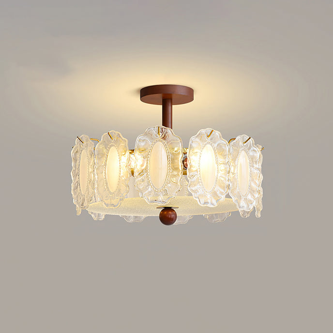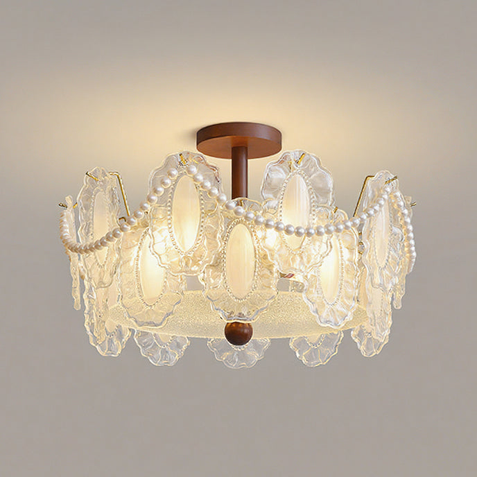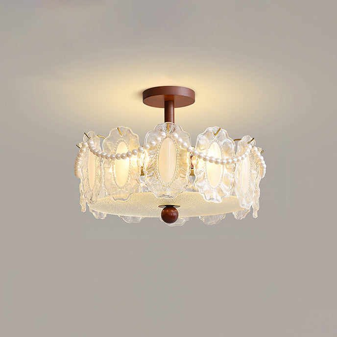 The Shionna Ceiling Light from Mooijane combines metal, glass, and wood to create a striking centerpiece with artistic elegance. Delicate petal-like glass panels shimmer softly, while the sturdy metal frame ensures stability and style. Optional pearl-like chains add a touch of luxury, enhancing its refined character.