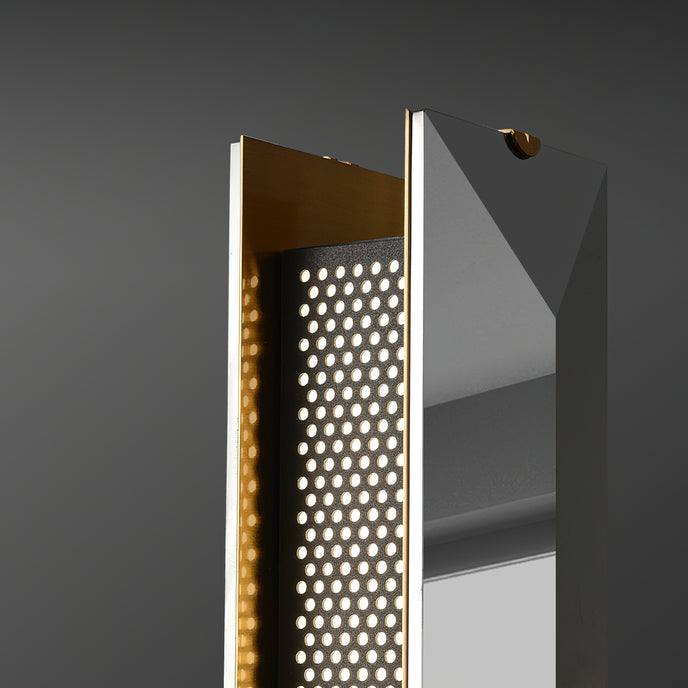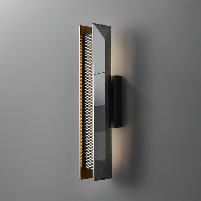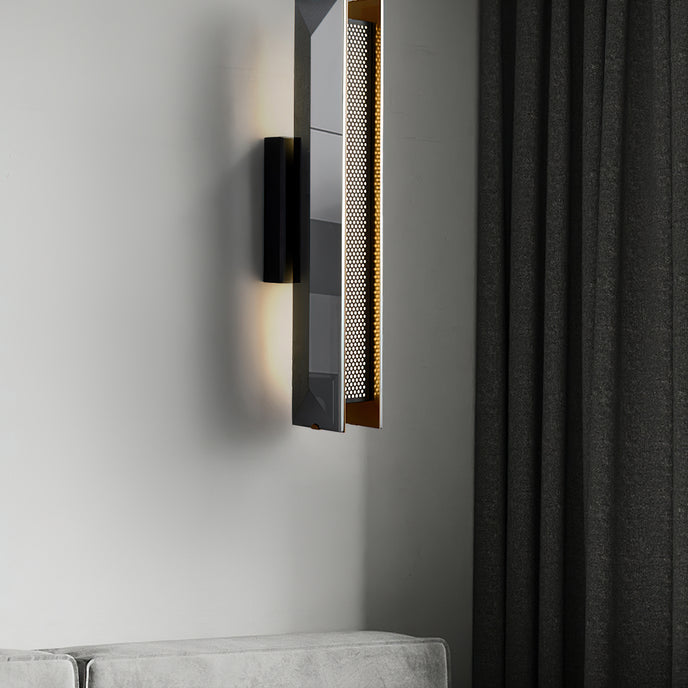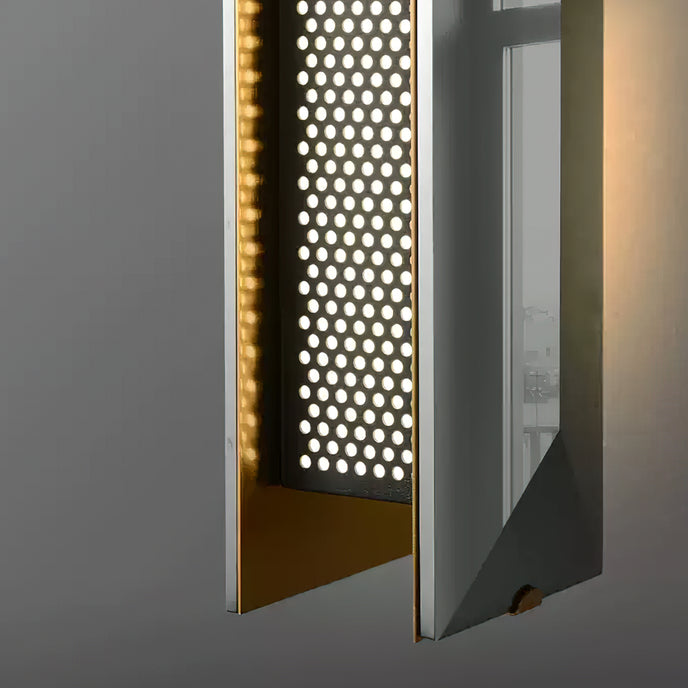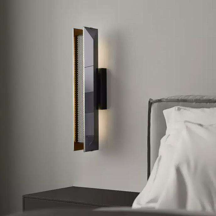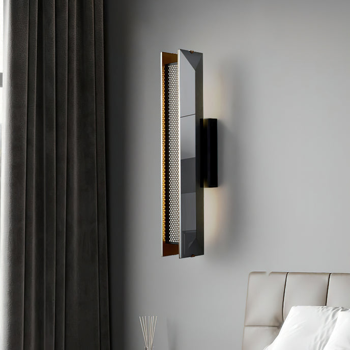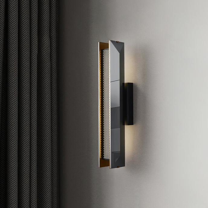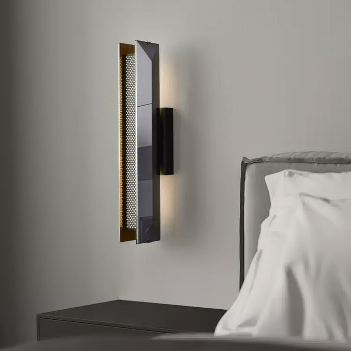 Illuminate your space with sophistication and style with our Stanley Wall Lamp from Mooijan. Its slender body features large glass crystal sides and an anti-glare grille, making it both beautiful and functional. Elevate your decor and create a luxurious ambiance with this unique product.