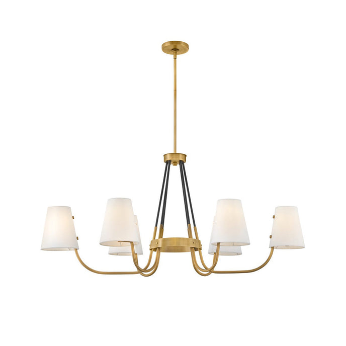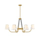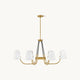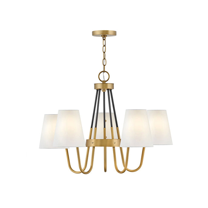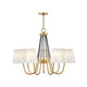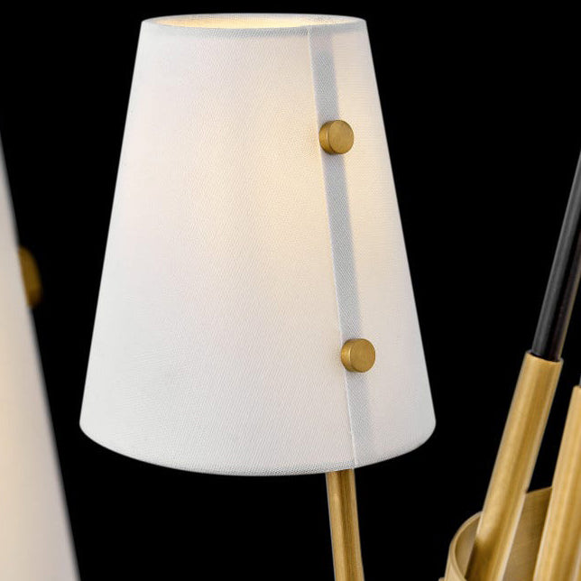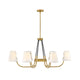 The Teague Chandelier by Mooijane embodies timeless tradition with gracefully curved arms in contrasting finishes and tapered offset shades. Its Heritage Brass with Black finish enhances the classic silhouette, offering a refined statement piece that adds enduring elegance to any interior.