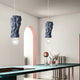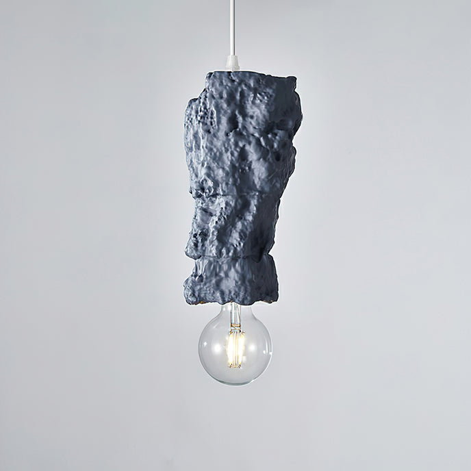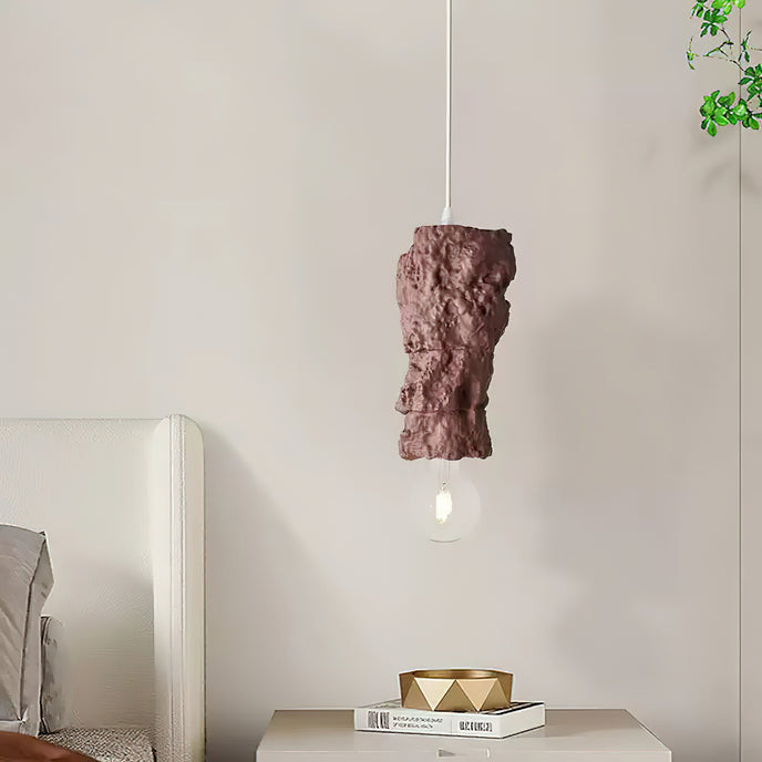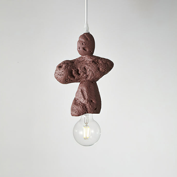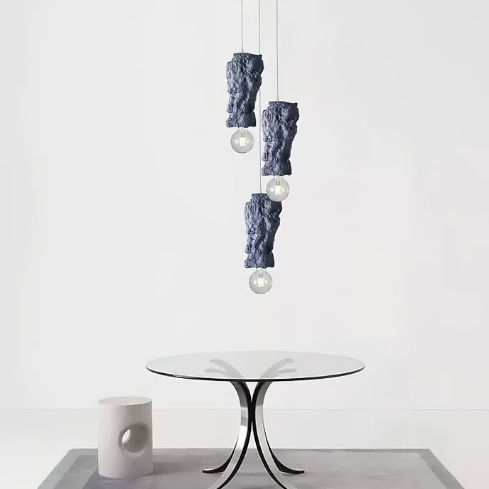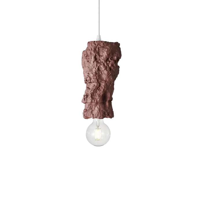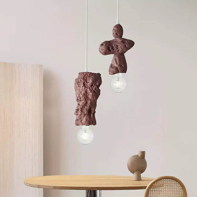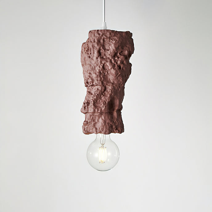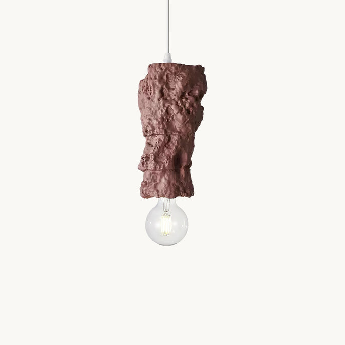 The Terracotta Stone Chandelier stands out with its bold, earthy textures and organic forms. Its sculpted resin look resembles solid stone, adding a natural, raw element to any space. The exposed light bulb underneath adds a modern touch, blending industrial minimalism with a wabi-sabi aesthetic.
