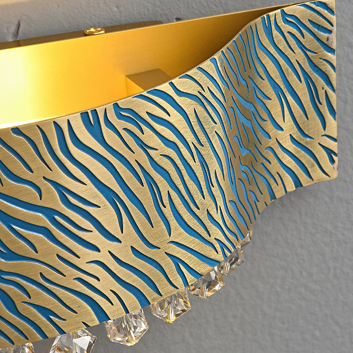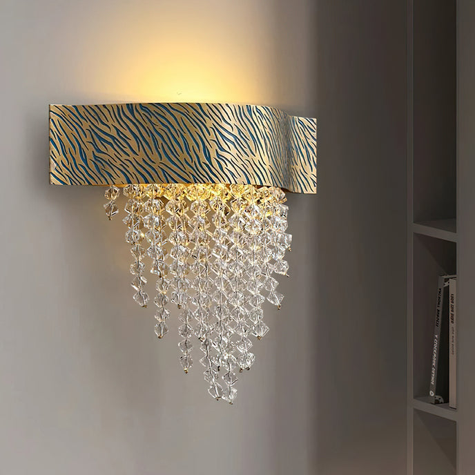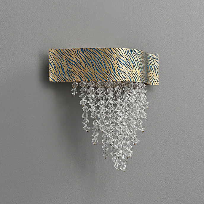 Transform any room into a luxurious oasis with our Tiger Stripes Wall Lamp. The exquisite cut crystal pendants and brass edges exude elegance, while the embossed "plunder" motif adds a touch of sophisticated whimsy. Bring a piece of art into your home with these exclusive wall lights.