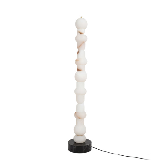 The Tribeca Alabaster Floor Lamp by Mooijane is a sculptural statement piece that fuses the natural beauty of Spanish alabaster with a refined, totemic silhouette. Stacked hand-carved alabaster blocks showcase unique veining and translucency, casting a warm, diffused glow when illuminated. Balanced by a matte black circular base, this floor lamp brings a sense of harmony, texture, and timeless elegance—perfect for modern interiors seeking artful ambiance and architectural depth.
