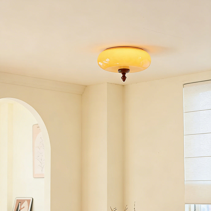 The Algonac Ceiling Light from Mooijane features a smooth, rounded glass shade accented with a refined wood detail for a warm, understated look. The gently curved glass diffuses light evenly, creating a soft, ambient glow. Ideal for bedrooms, hallways, or living areas, this flush mount brings calm elegance and timeless simplicity to any space.