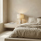 The Astere Table Lamp from Mooijane blends warm yellow travertine with a soft fabric drum shade for a relaxed, modern look. Its cylindrical stone base showcases natural pores and subtle veining, giving each lamp a distinctive, tactile character. Thoughtful details like a simple push-button control and a discreet built-in USB port add everyday convenience for bedside or sofa-side use.