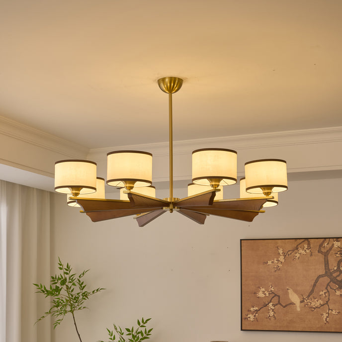 The Brillora Chandelier by Mooijane blends modern elegance with natural warmth through its refined mix of wood, metal, and frosted glass shades. Designed to create a soft, inviting glow, it serves as a sophisticated centerpiece for dining rooms, living areas, or bedrooms. Combining timeless style with practical illumination, this chandelier enhances any interior with effortless charm and contemporary grace.