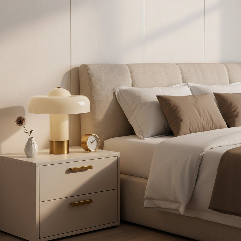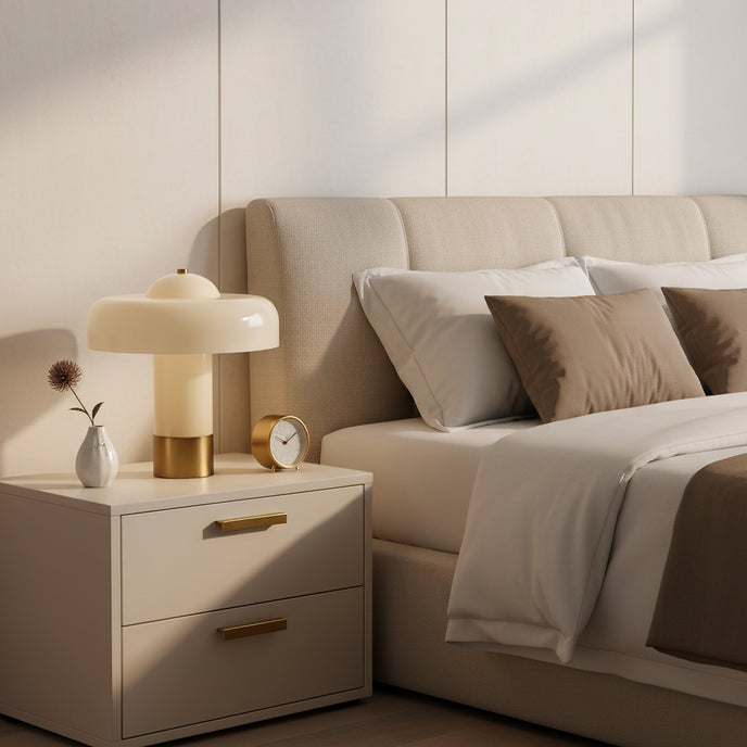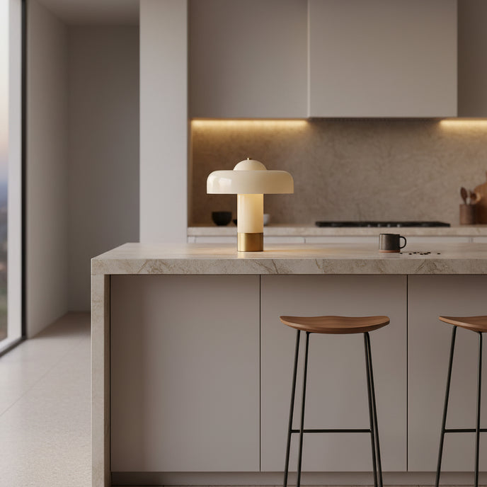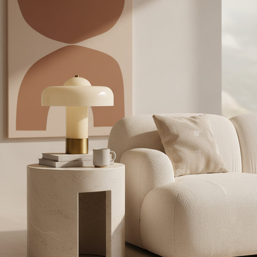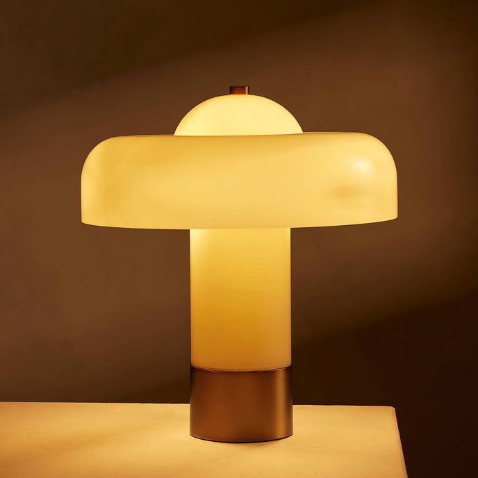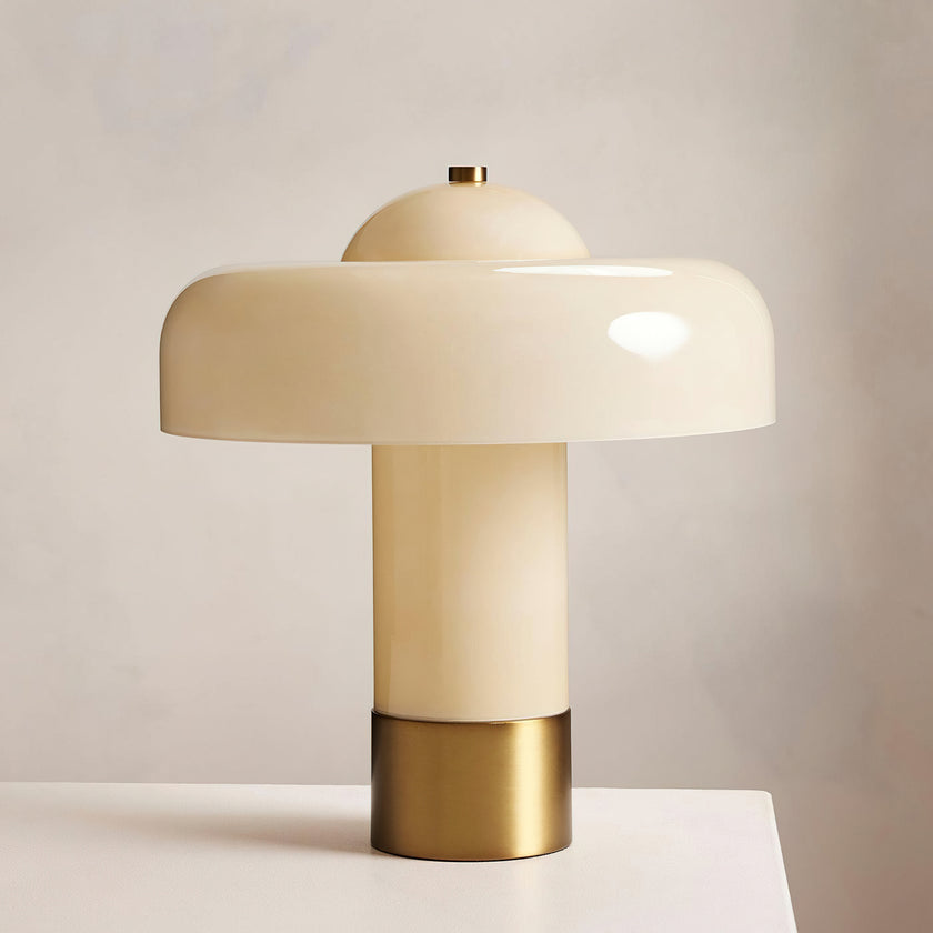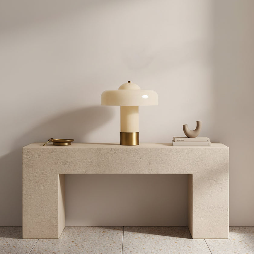 The Brumbry Table Lamp by Mooijane is a modern statement of simplicity and elegance. Crafted from molded glass with a glossy domed shade, it emits a soft, uniform glow through its entire form. Perfect for bedside tables, desks, or cozy reading corners, this luminous piece adds a serene and contemporary touch to any space.