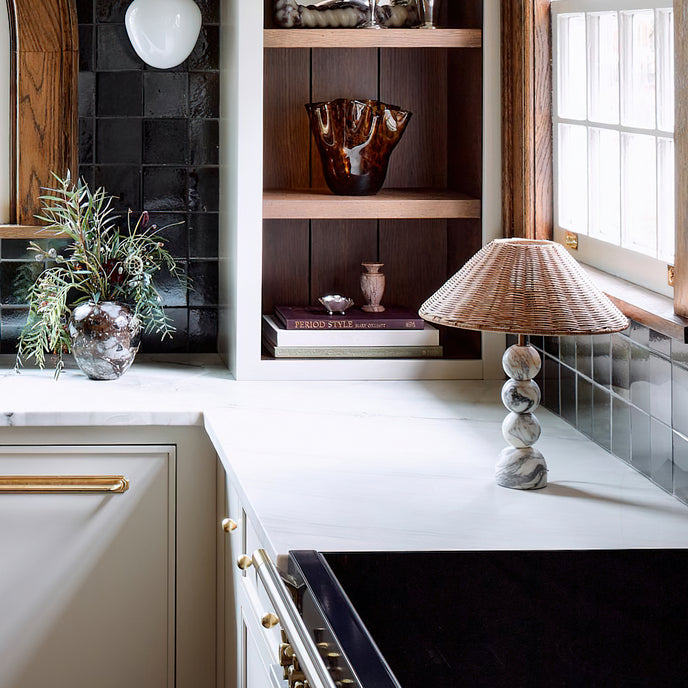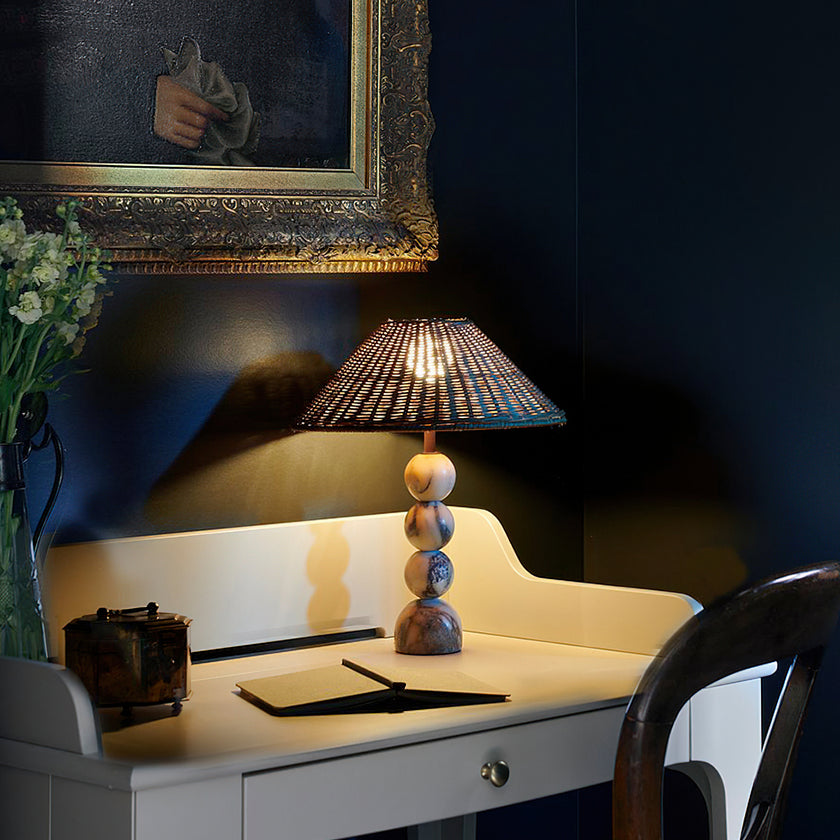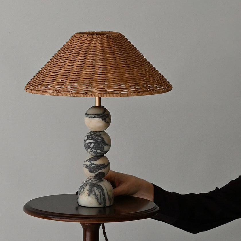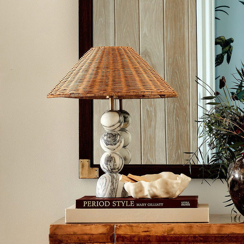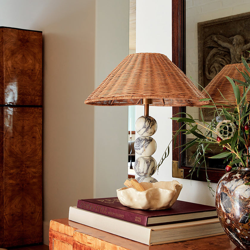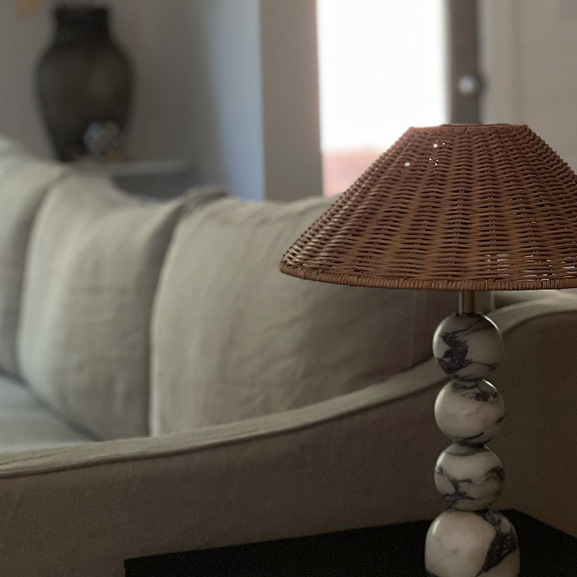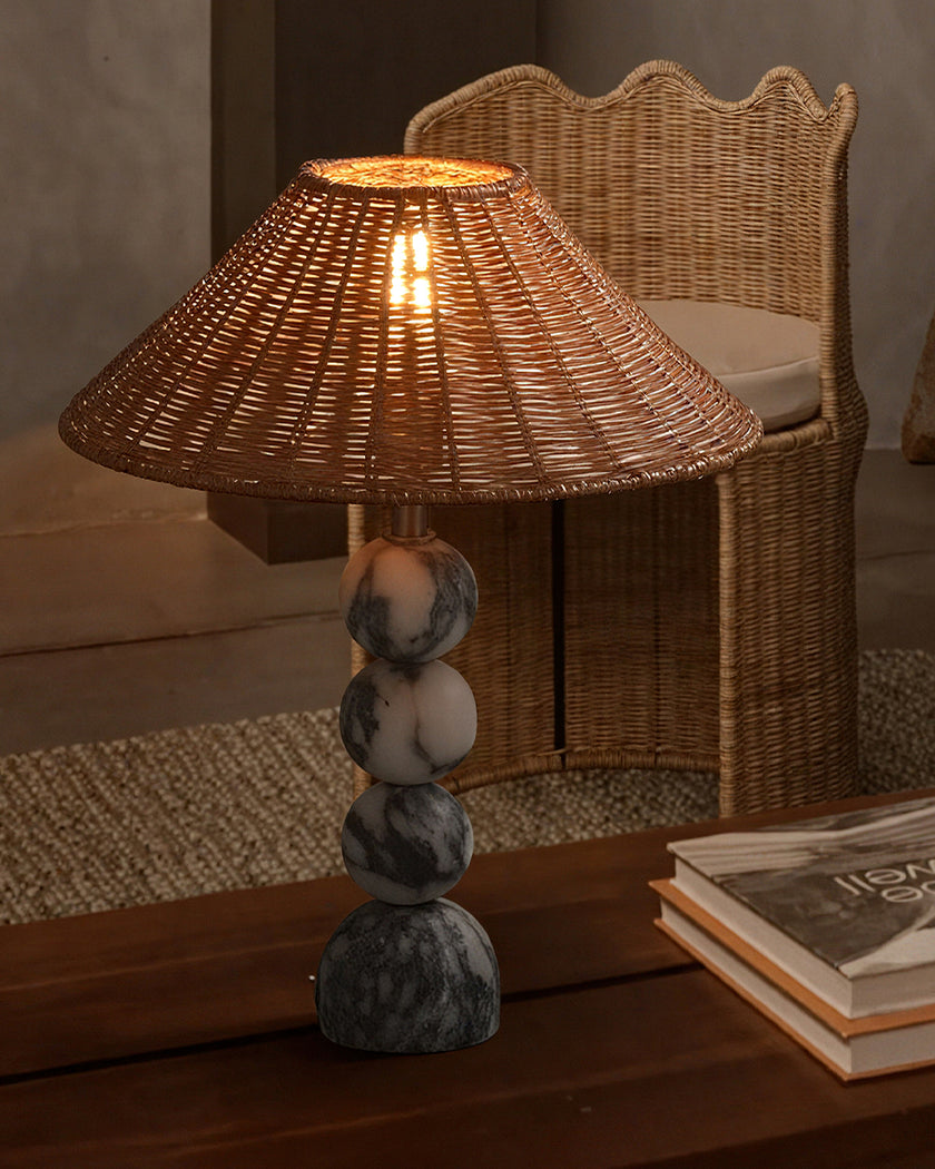 Elevate your space with the Carroll Table Lamp from Mooijane. Featuring a solid Italian marble base paired with a hand-woven rattan shade, this lamp is a unique statement piece that blends natural textures with timeless elegance. Perfect for desks, countertops, or side tables, it adds both style and enduring charm to any room.