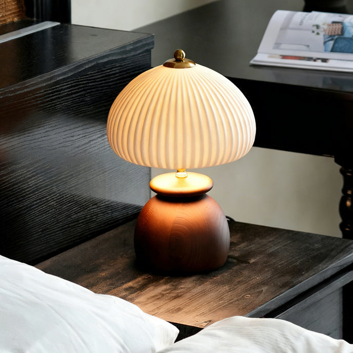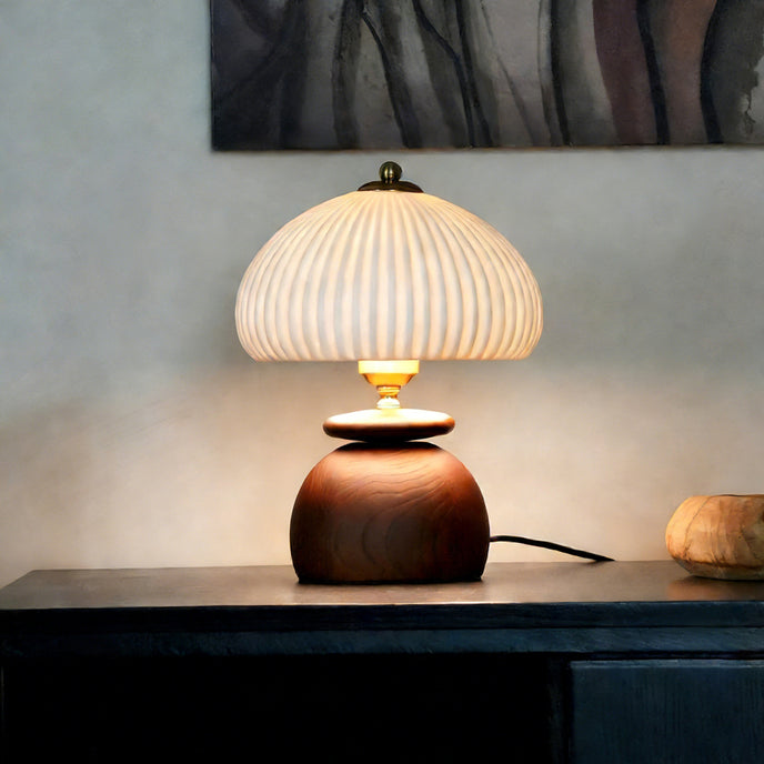 The Chania Table Lamp by Mooijane blends natural materials with refined craftsmanship. A rounded wooden base grounds the design, paired with a softly textured ceramic shade that diffuses light evenly. Subtle metal accents add definition, creating a warm yet sophisticated look—ideal for bedside tables, living rooms, or reading nooks.