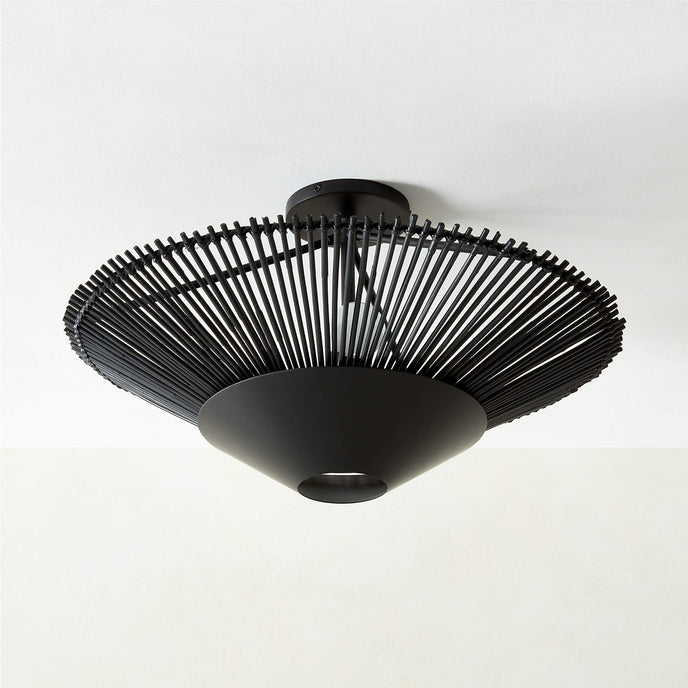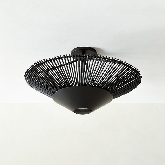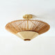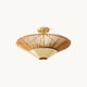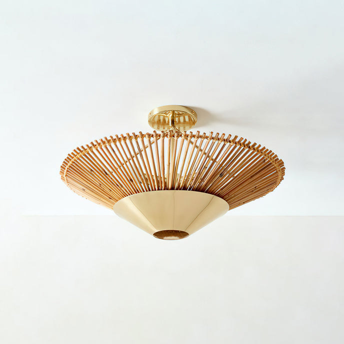The Corisha Ceiling Lamp by Mooijane seamlessly blends natural materials with exquisite craftsmanship. The handwoven rattan shade creates a tapered silhouette, emitting a rich, luminous light, while the metal frame adds warmth and acquires a rich patina over time. This striking lamp will enhance any bedroom, living room, or entryway.
