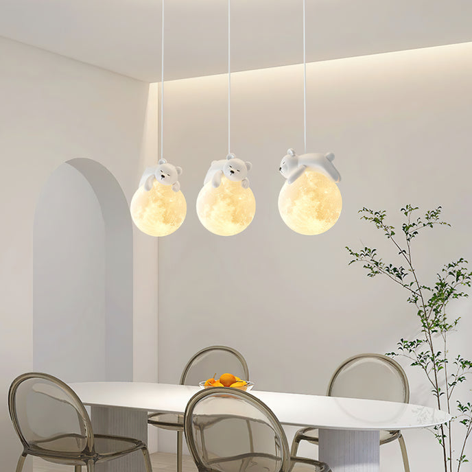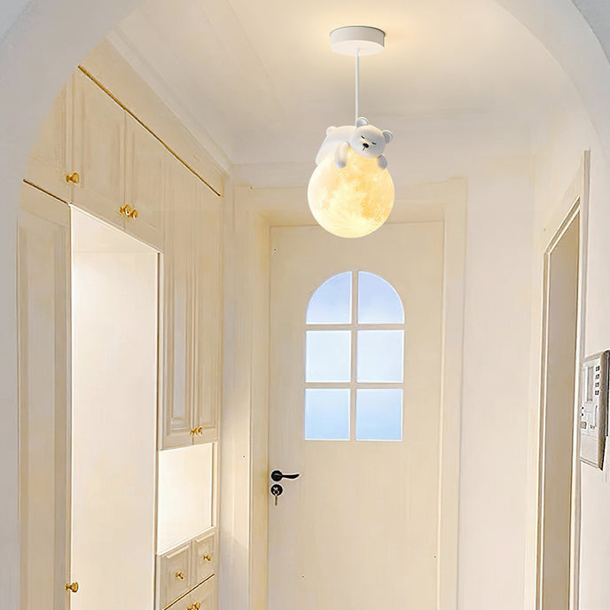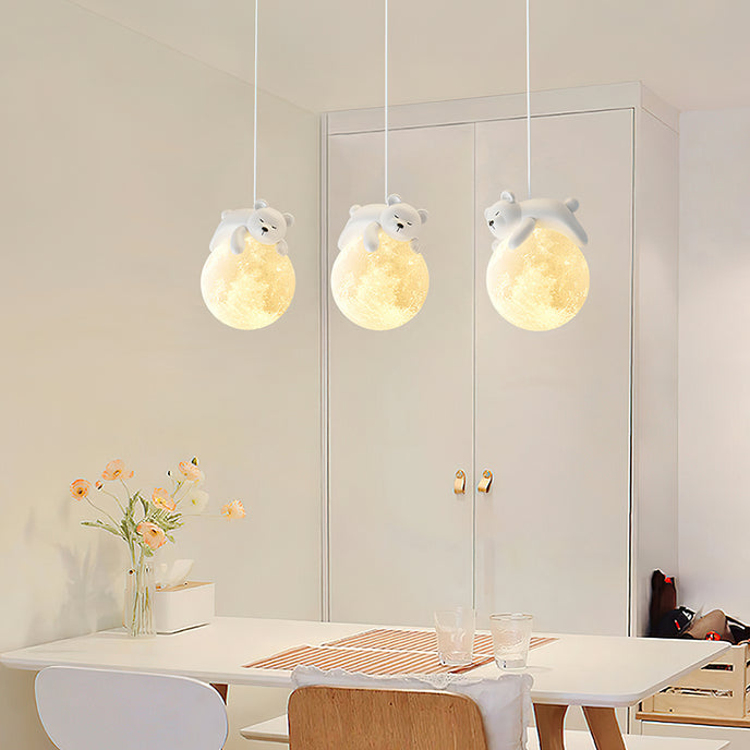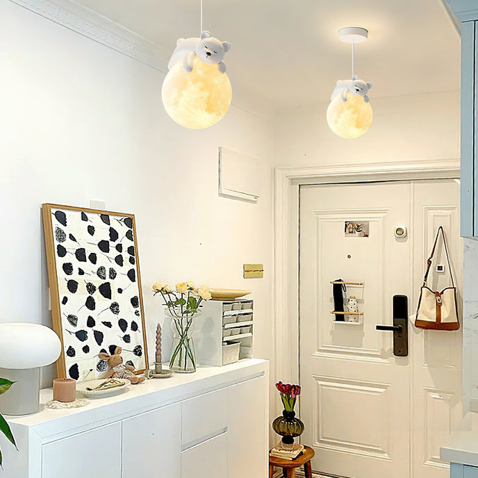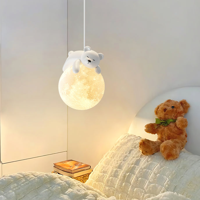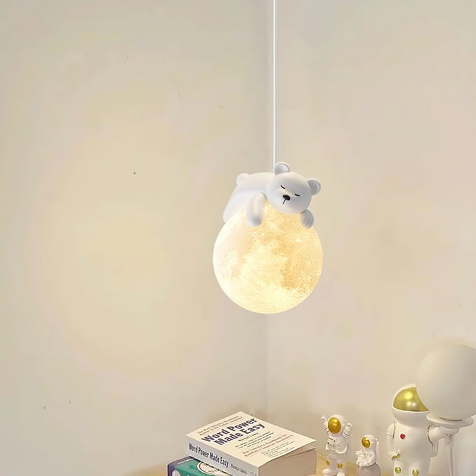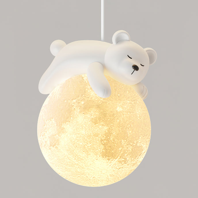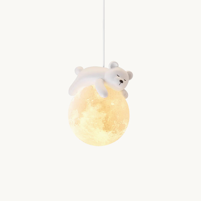 Verleihen Sie dem Schlafzimmer Ihres Kindes mit unserer cremefarbenen Tier-Pendelleuchte einen einzigartigen, skurrilen Charme. Sein wunderschönes Bären- und Monddesign besteht aus einer haltbaren Mischung aus Harz und Eisen und ist somit eine zeitlose Ergänzung, die jedem Raum eine warme, gemütliche Atmosphäre verleiht. Erhellen Sie jeden Raum mit diesem einzigartigen Stück, dessen aufwendige Details und langlebige Konstruktion es für viele Jahre zu einem Lieblingsstück machen werden.