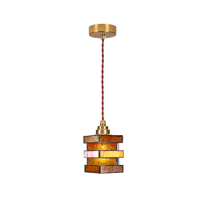 The Dale Glass Pendant Light from Mooijane blends iron and stained glass to create a warm, vintage-inspired aesthetic. Layered glass shades cast a soft, brown and pink-orange glow, evoking the charm of handcrafted stained glass art. Its sturdy metal base complements the elegant design, making it a striking decorative piece even when unlit.