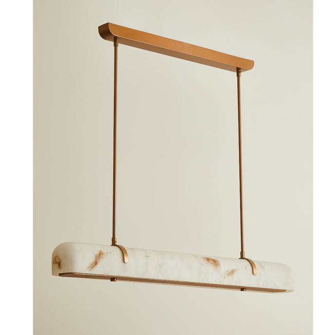 The Deleazo Pendant Lamp by Mooijane embodies minimalist elegance through a harmonious balance of form and material. Crafted from metal and simulated alabaster, its surface reveals a soft, natural texture that evokes the beauty of stone. A warm, diffused glow radiates from within, creating an atmosphere of calm sophistication. Supported by a brushed metal stem, this pendant lamp adds a touch of understated luxury to dining rooms, kitchen islands, and modern living spaces.