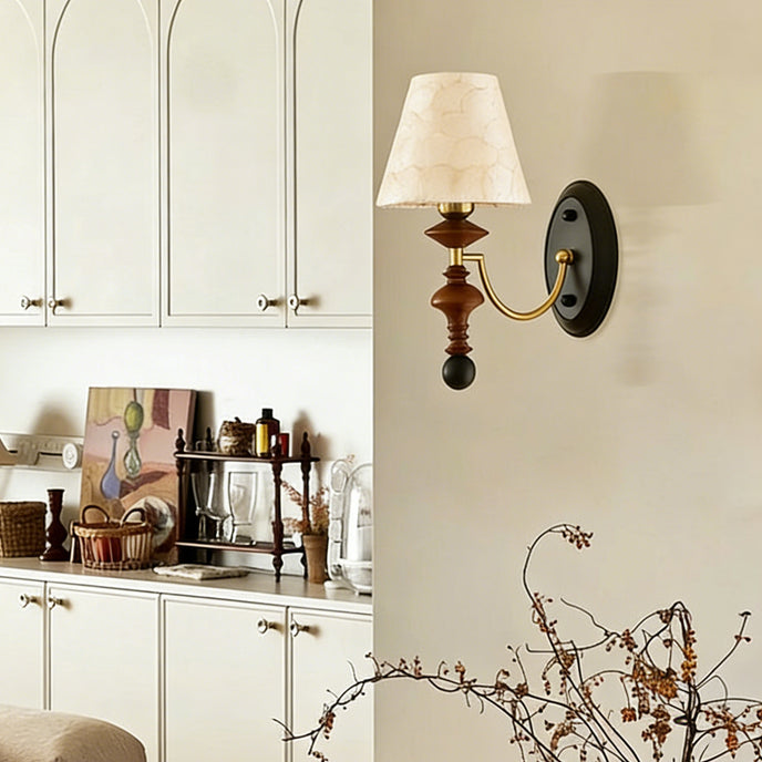 The Dichter Wall Light from Mooijane adds serene elegance to any space with its delicate shell-shaped shade and refined wood detailing. The harmonious blend of wood, metal, and shell exudes timeless beauty, while the soft light emitted through the translucent shade creates a warm, inviting glow.
