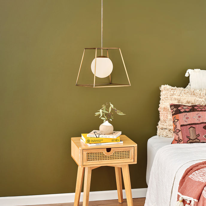 The Ellrich Pendant Light by Mooijane showcases mid-century modern design at its finest. Featuring eye-catching etched glass globes set within a modern open frame of solid steel, it’s available in Brass or Black. This sleek, timeless fixture adds a touch of retro flair to any space.