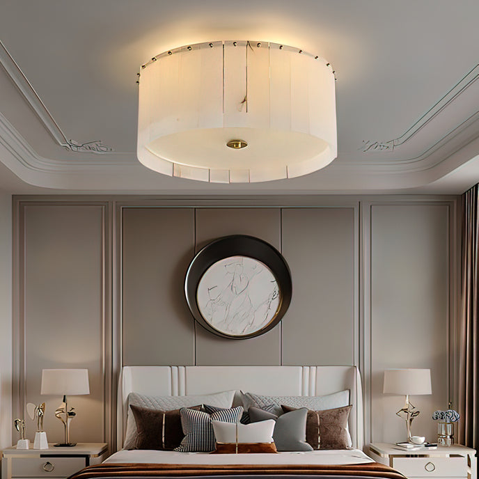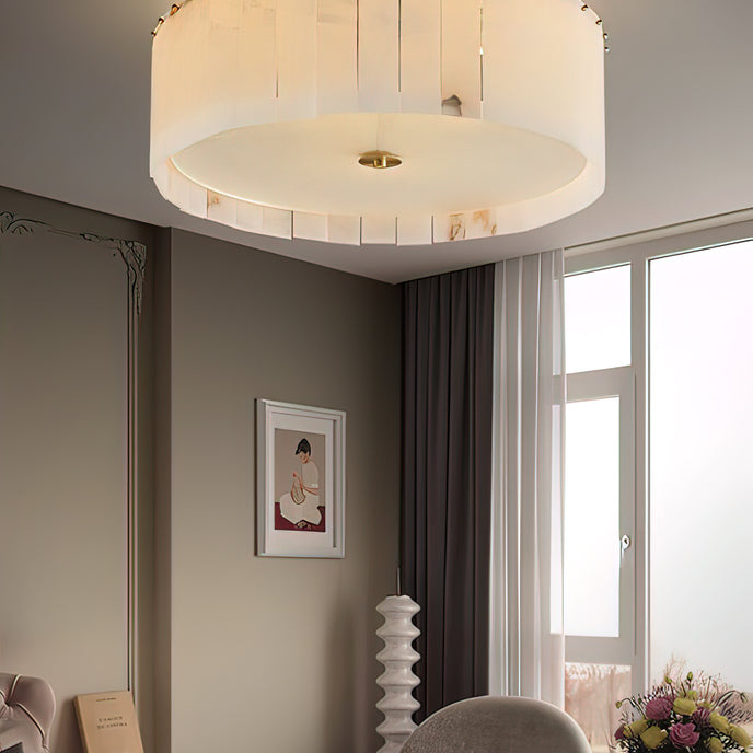 - Alabaster is a natural stone known for its smooth texture and translucent appearance. Its origins date back to ancient civilizations where it was used for sculpting and crafting objects of importance. There are two main types of alabaster: Gypsum and Calcite, with the latter being the preferred type for lighting fixtures due to its durability and natural veining.