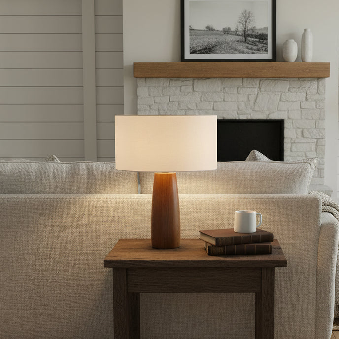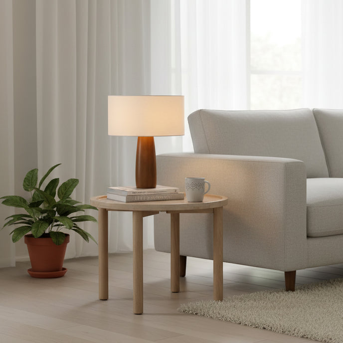 The Emilio Table Lamp by Mooijane combines a rubberwood base with a crisp white fabric shade for a timeless, versatile design. Perfect for expressing your personal style, it adds both function and elegance to bedrooms, living rooms, or study spaces.