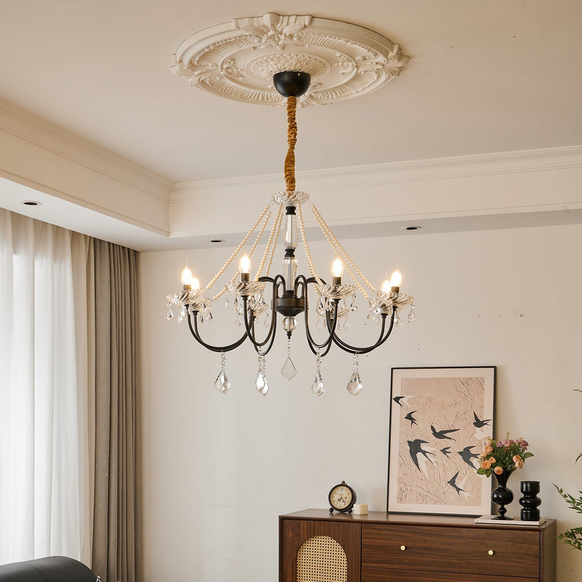 Elevate your space with the Empress Crystal Chandelier from Mooijane. Crafted with black-coated iron, shimmering crystals, and exquisite glass details, this regal chandelier exudes luxury and sophistication. Perfect for adding a touch of opulence to your living or dining room, it effortlessly combines classic beauty with modern elegance.